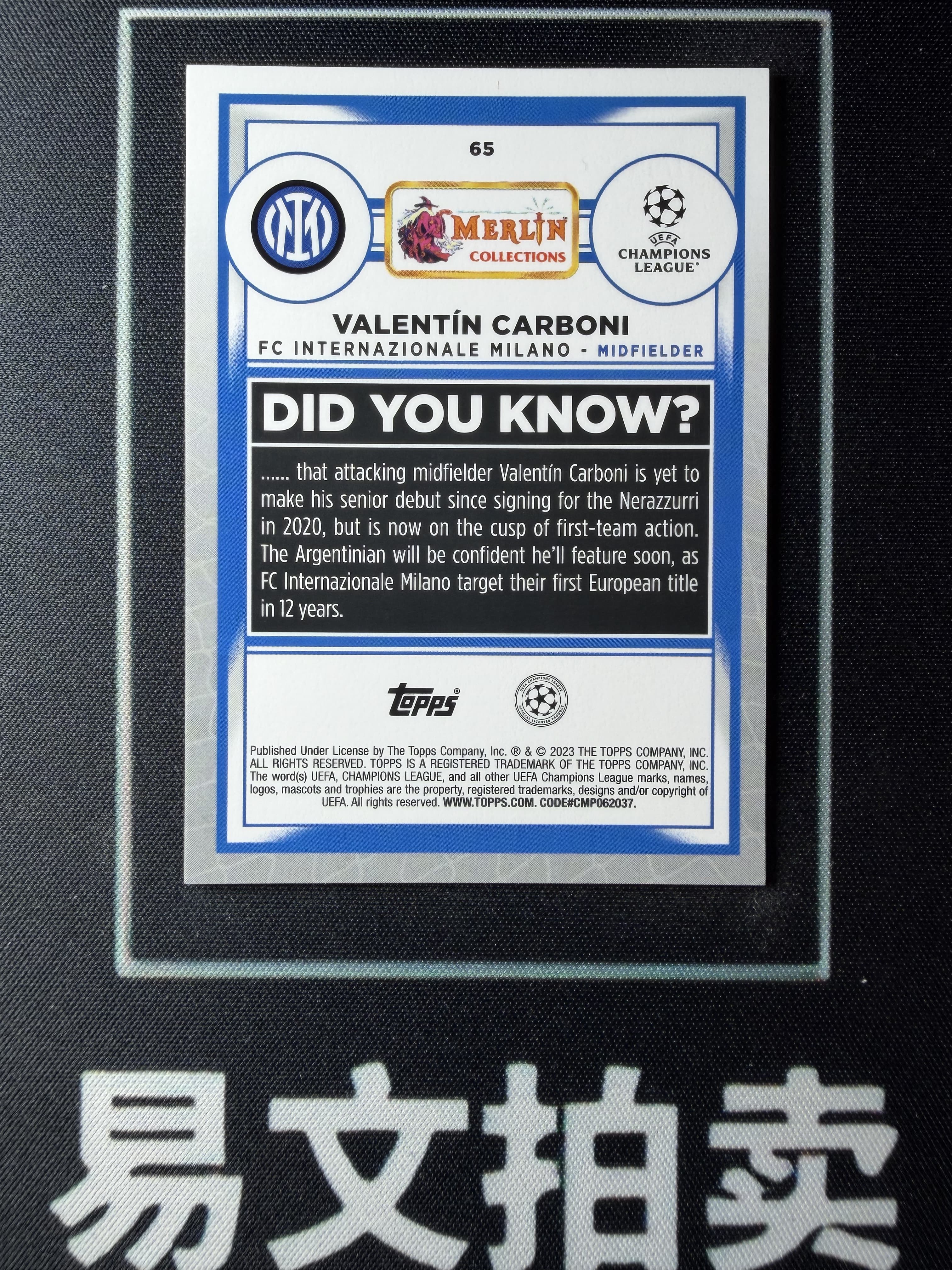 【易文拍卖 超级回款】2022-23 Topps Merlin 梅林 欧冠 VALENTIN CARBONI 瓦伦丁 瓦伦汀 卡尔博尼 国际米兰 阿根廷 RC新秀 77/99编 #卡痴