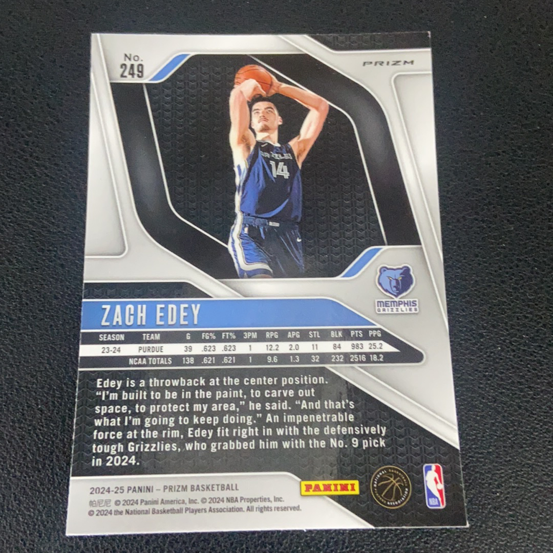 2024-25 Panini Prizm Zach Edey RC 【9527拍卖】 扎克埃迪 伊迪 粉碎冰折 pz 灰熊 新秀 卡品如图 斯蒂芬卡斯尔里萨谢萨尔克内克特麦凯恩同级