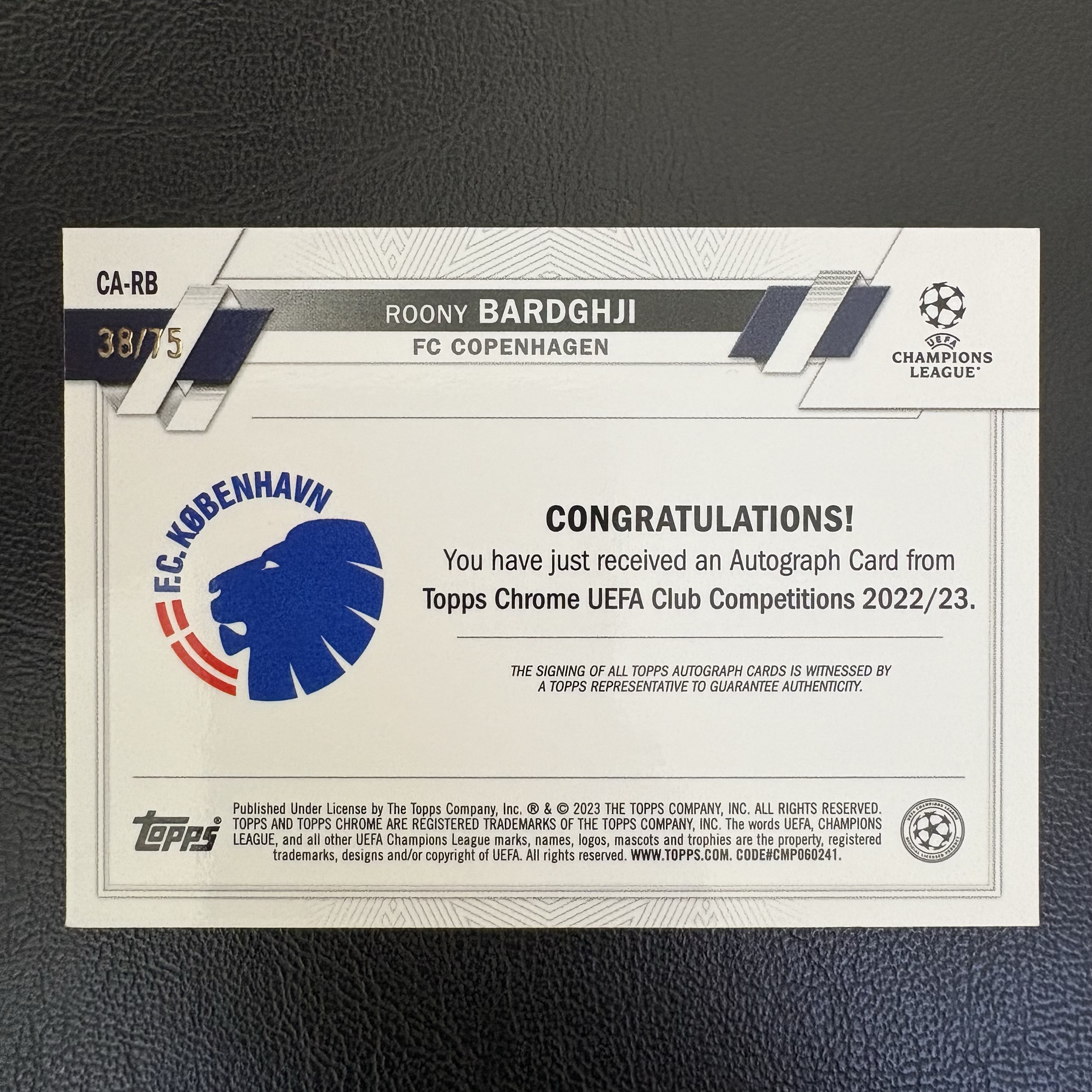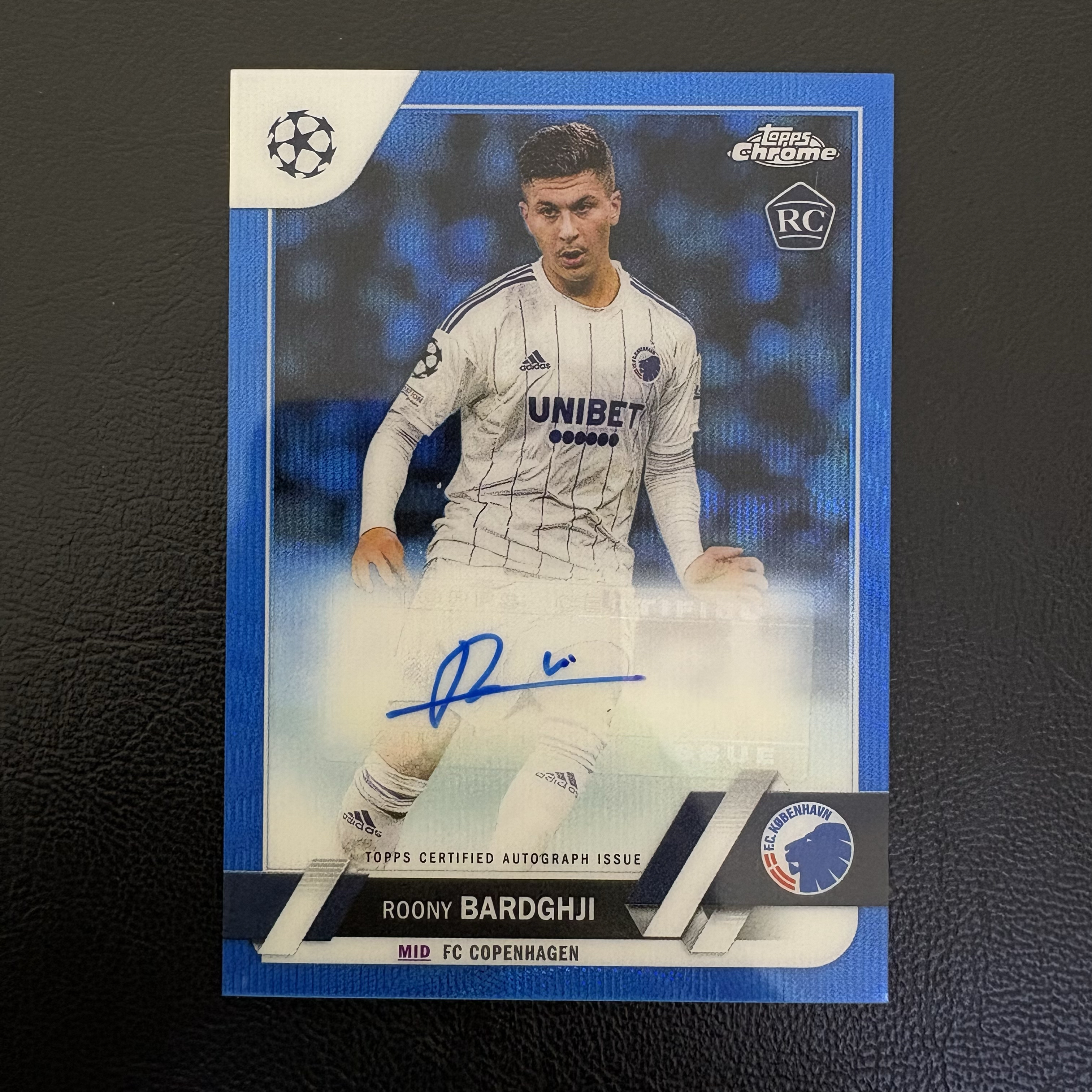 2022-23 Topps Chrome Roony Bardghji RC 欧冠 TC 哥本哈根 巴尔德吉 新秀 签字 /75编 蓝波纹折 低编 签名卡 加盟巴萨 未来可期 投资收藏 卡品如图