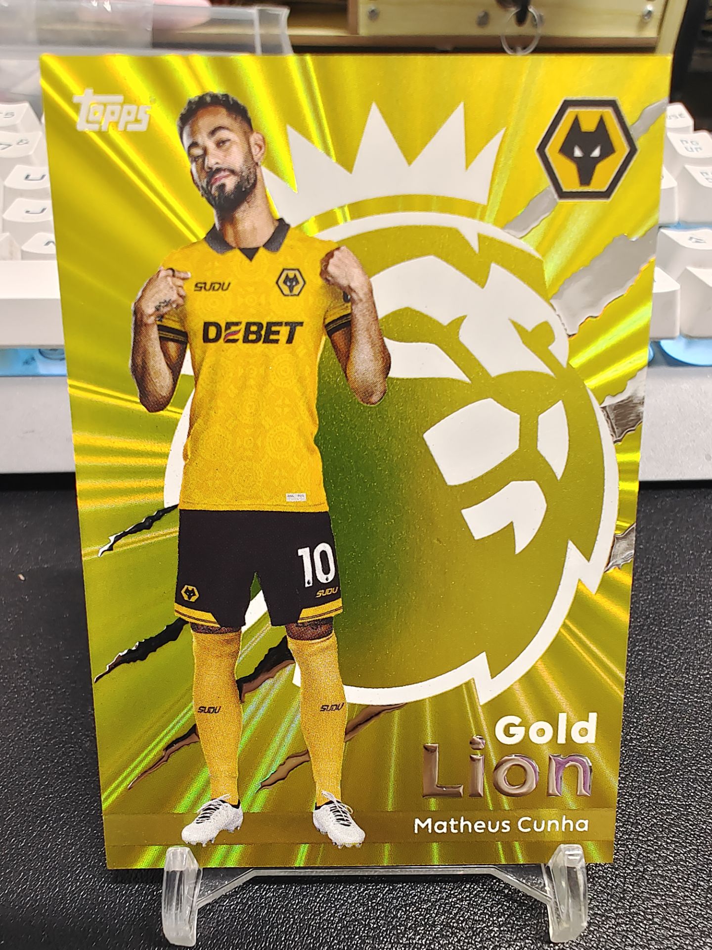 【浩行拍卖 截标预付82%】2025 Topps Matheus Cunha 英超 新赛季 狼队 马特乌斯 库尼亚 金佛光折 金折 折射 GOLD LION 金狮特卡 大比例 ssp 专收必备 瑕疵看图「灰木」1120E02恁