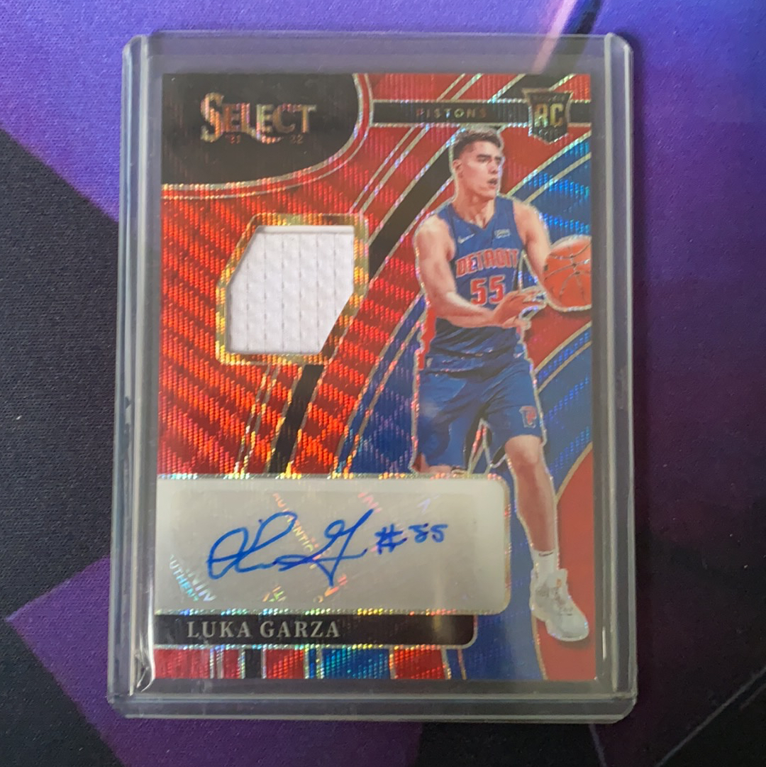 2021-22 Panini Select Luka Garza 活塞 卢卡 加尔扎 新秀RC 红波纹折 折射 RJA 球衣物料签字 微瑕如图 b-接上拍