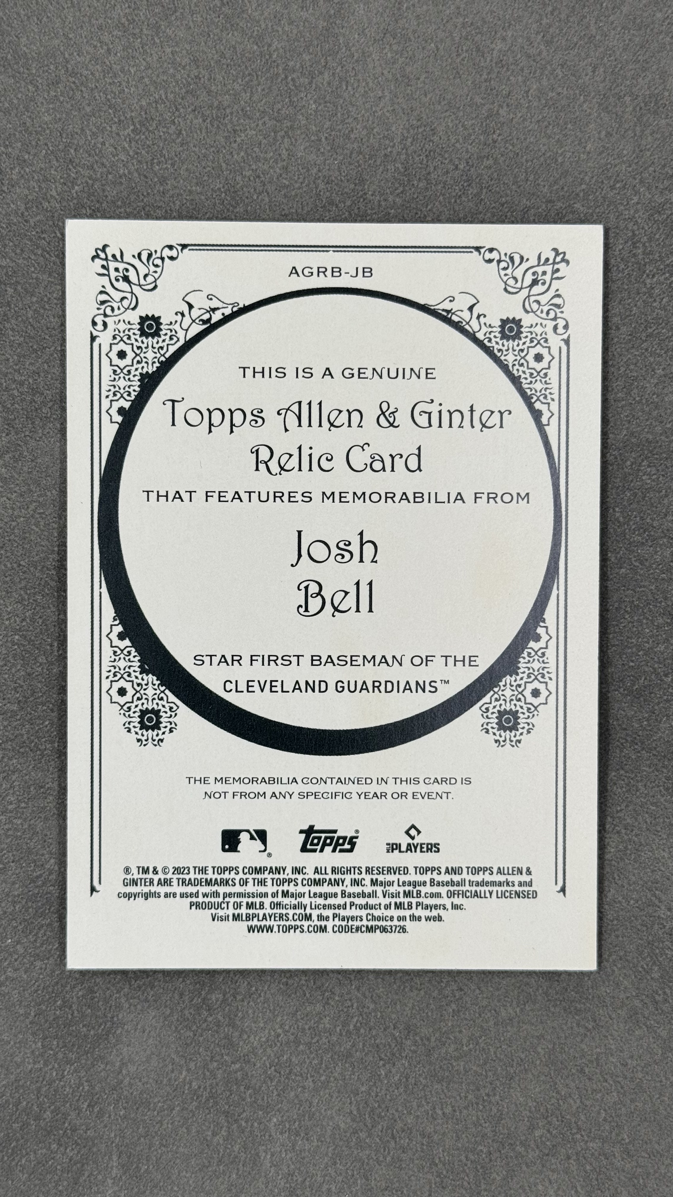 2023 Topps Allen & Ginter Josh Bell 守护者队 约什 贝尔 小窗球衣切割 球衣物料 实卡好看 值得凑套收藏#AGRB-JB