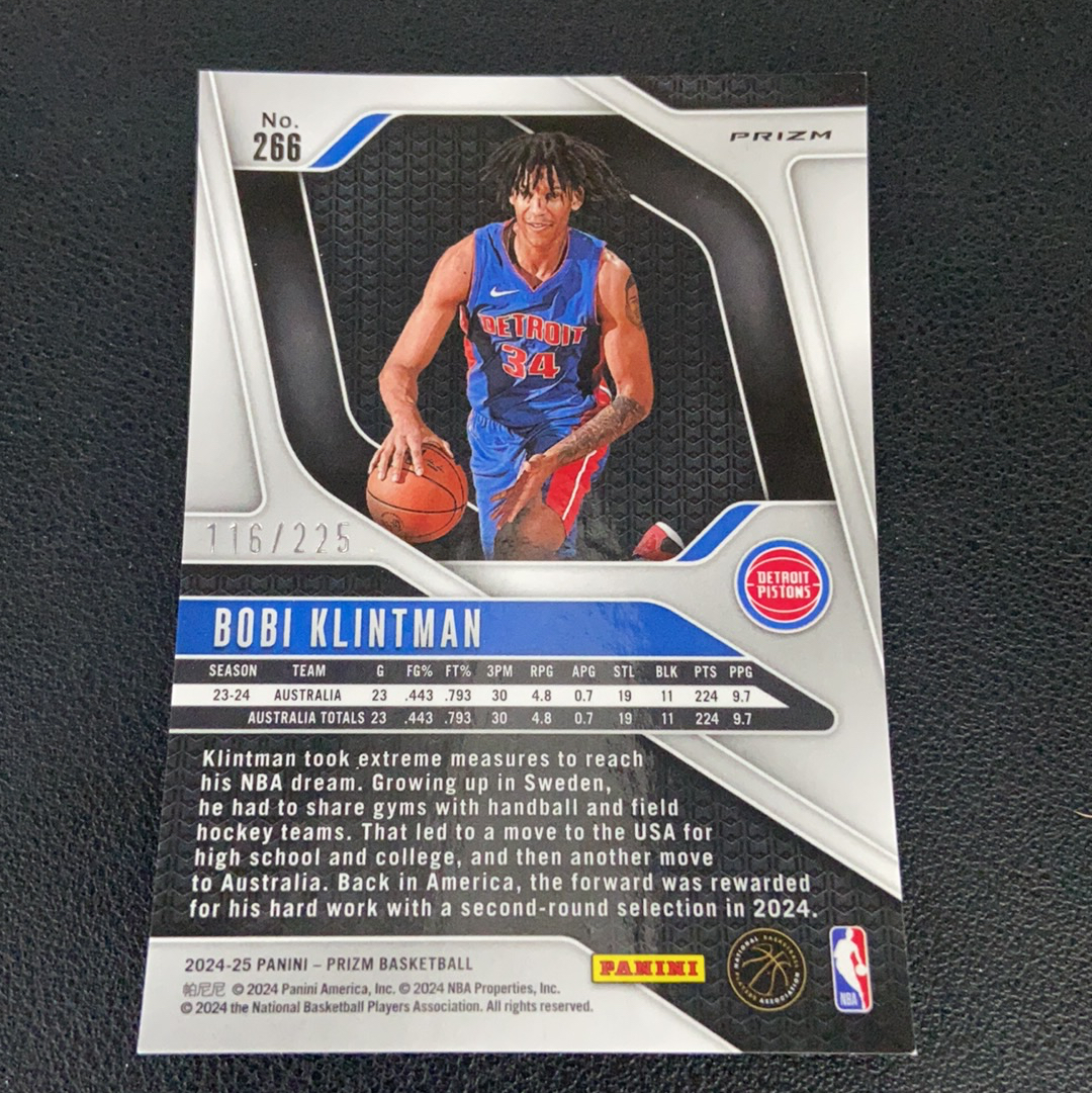 2024-25 Panini Prizm Bobi Klintman pz 博比 克林特曼 活塞 新秀 RC 青碎冰折225/225编 尾编!卡品如图