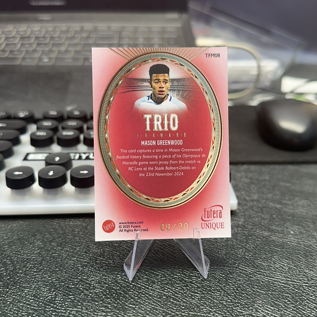 2025 Futera Futera Unique Mason Greenwood 【鸡叔拍卖】福特拉 梅森 格林伍德 曼联 08/20编 红折 单窗 球衣物料 不保卡品 🦈
