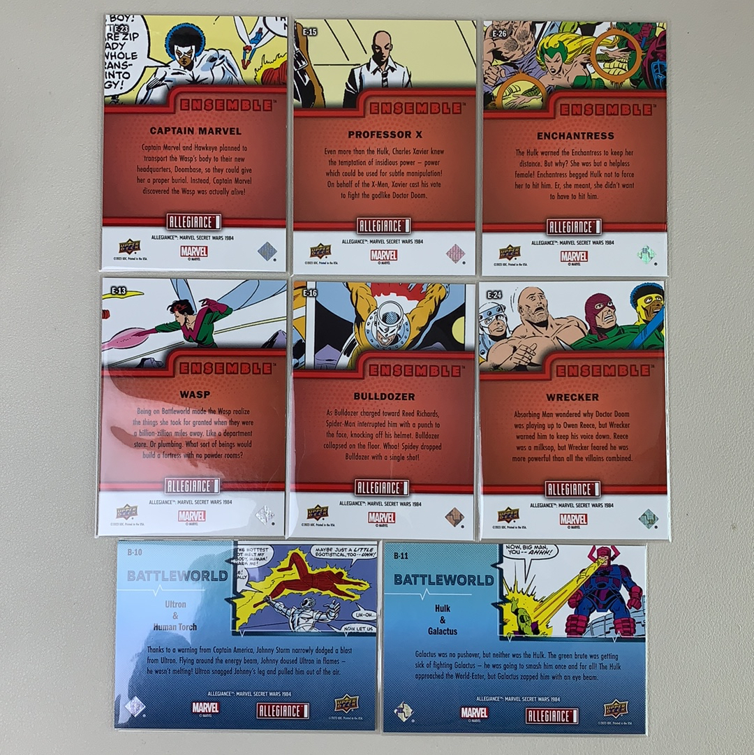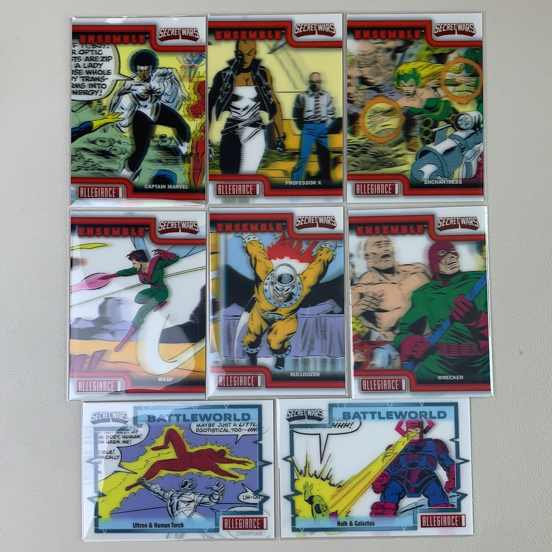 【弈卡代拍】 2023 Upper Deck Marvel漫威Allegiance 忠诚 秘密战争 大比例 3D光栅特卡 全息特卡 惊奇队长 X教授 黄蜂女等 8张 打包 品相如图 凑套必备 真帕杰洛