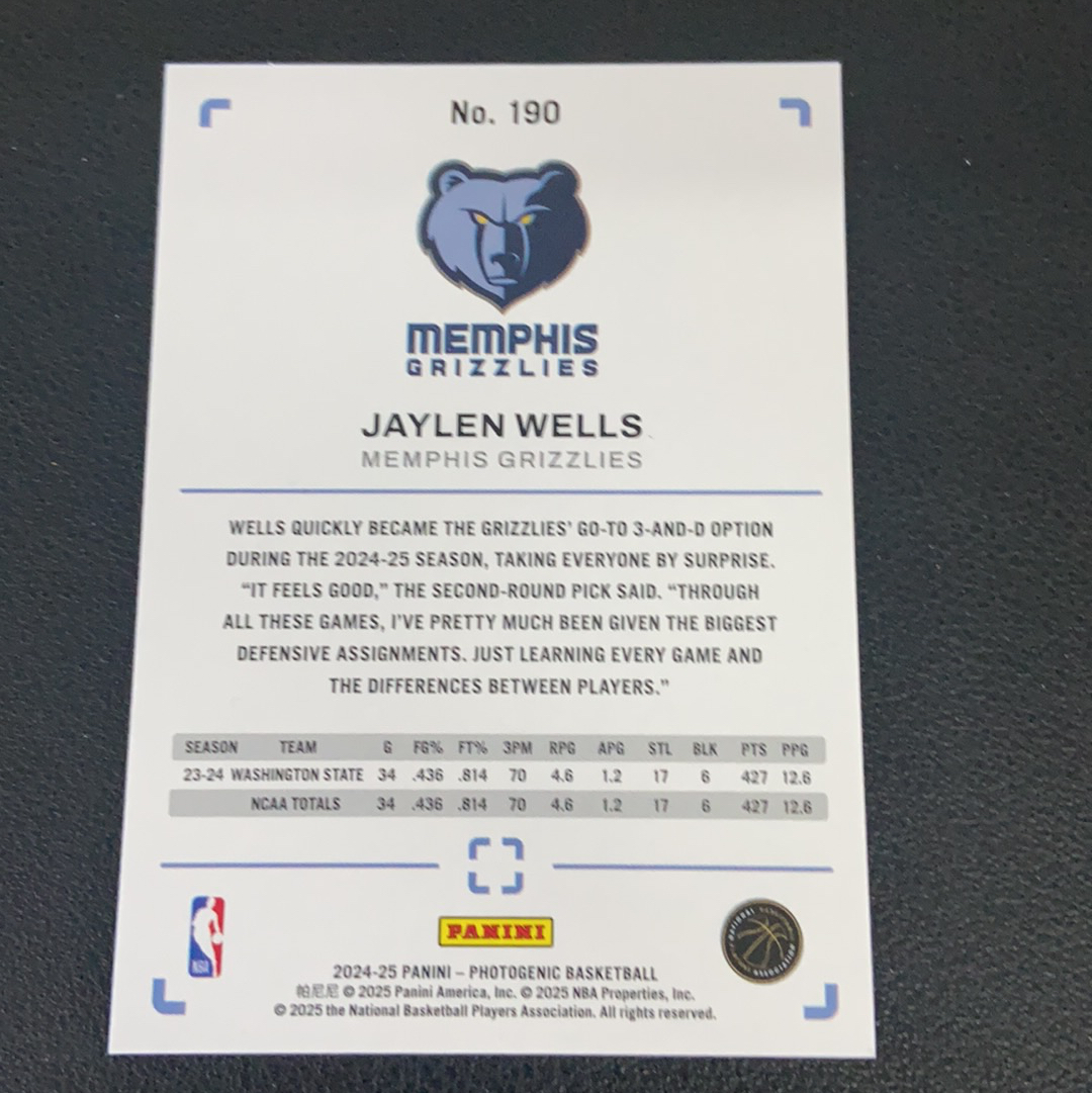 2024-25 Panini Photogenic Jaylen Wells 灰熊 杰伦 威尔斯 49编 射线折 折射 新秀 上镜 新秀