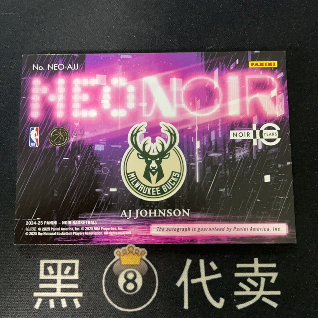 20【黑8代卖】2024-25 Panini Noir 诺尔 Aj Johnson aj 约翰逊 RC 新秀 霓虹灯 签字 卡签 39/99编 卡品如图【Victory哥-22】