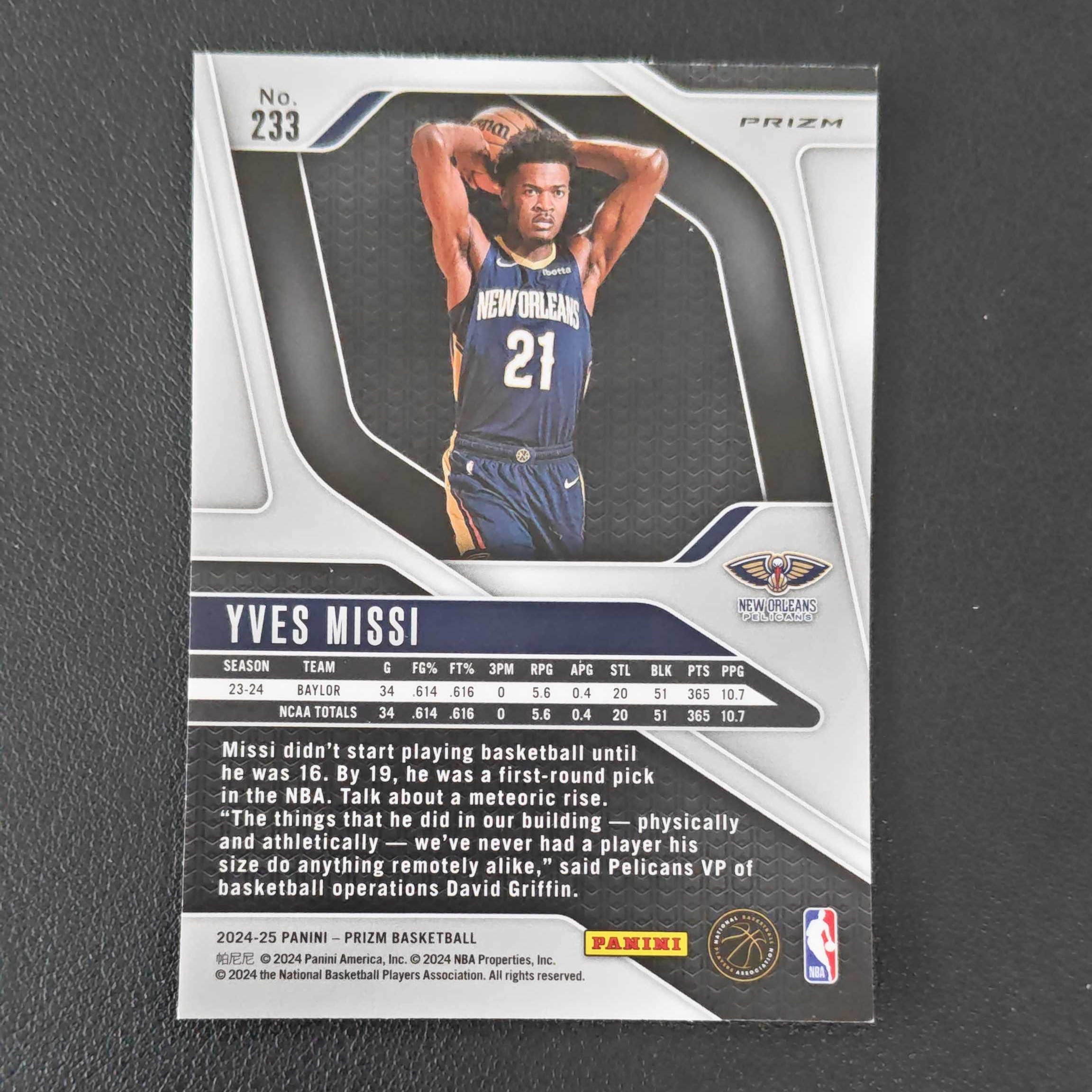2024-25 Panini Prizm pz系列 Yves Missi 伊夫 米西 鹈鹕 RC 新秀 粉碎冰折 折射 潜力新秀 专收必备 卡品如图