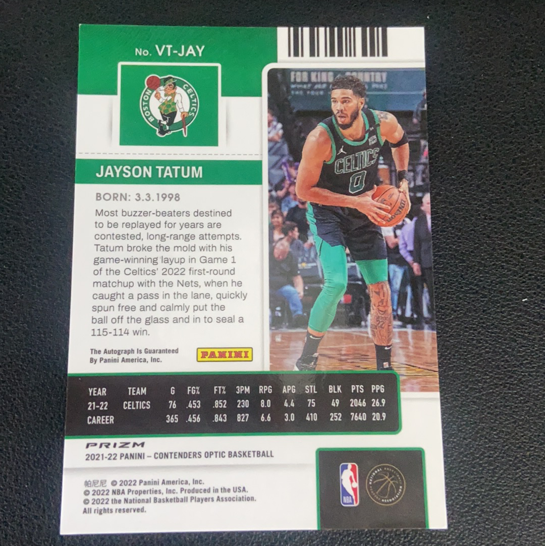 2021-22 帕尼尼 Contenders 球票 Optic 凯尔特人 Jayson Tatum 杰森 塔图姆 獭兔 签字 折射卡签 银折 送砖 探花秀 绿军夺冠功臣