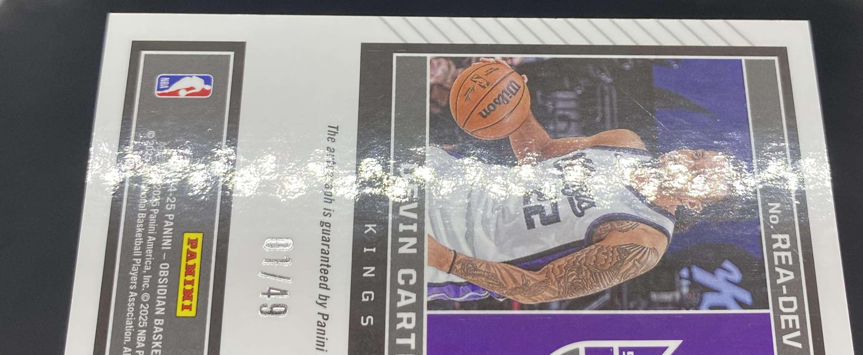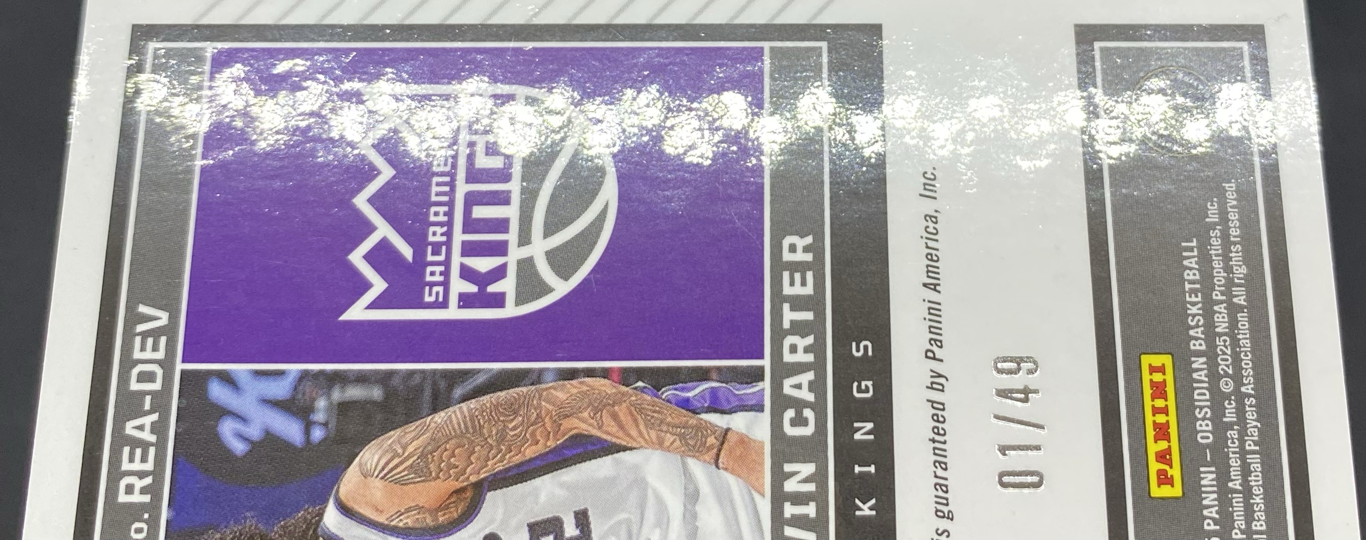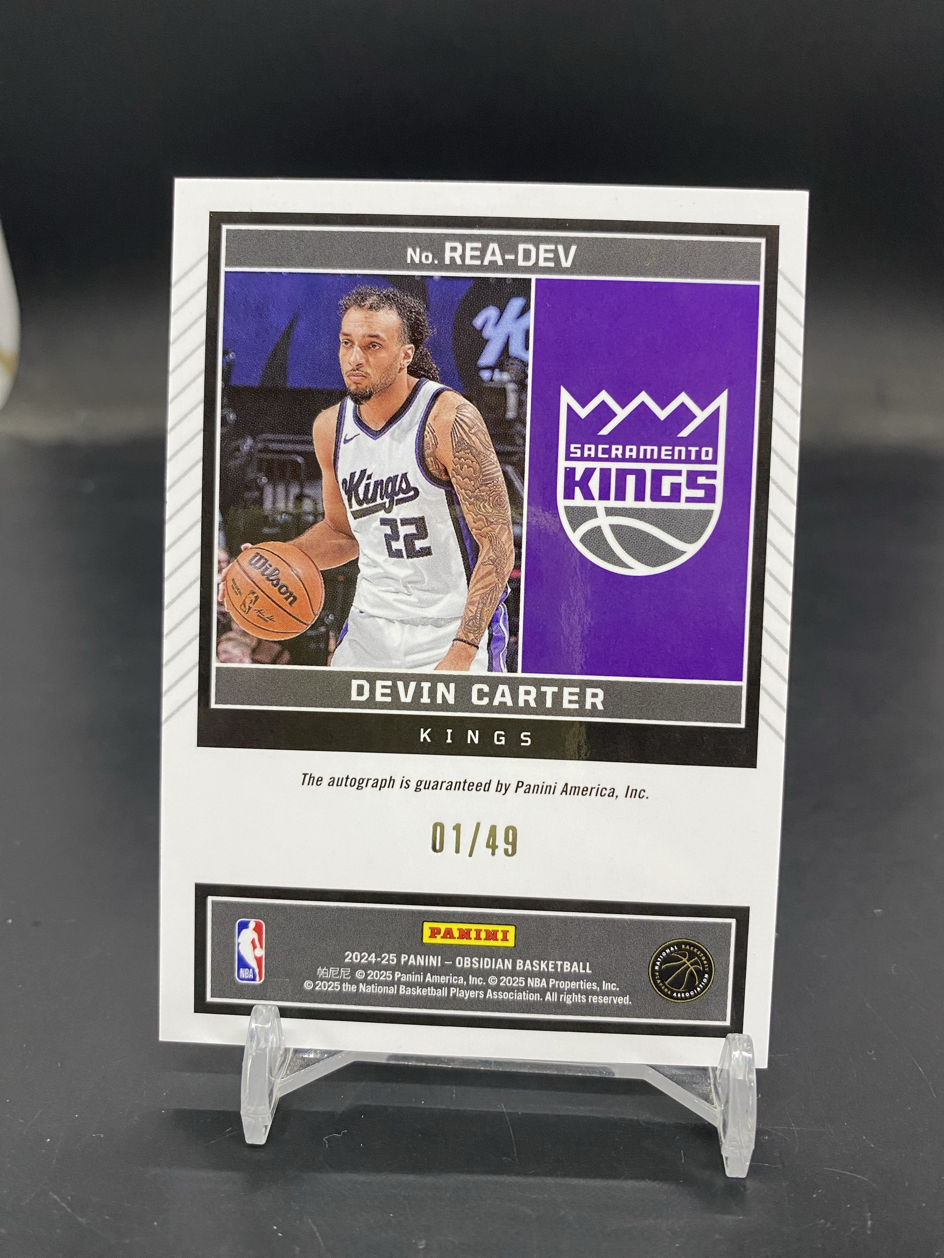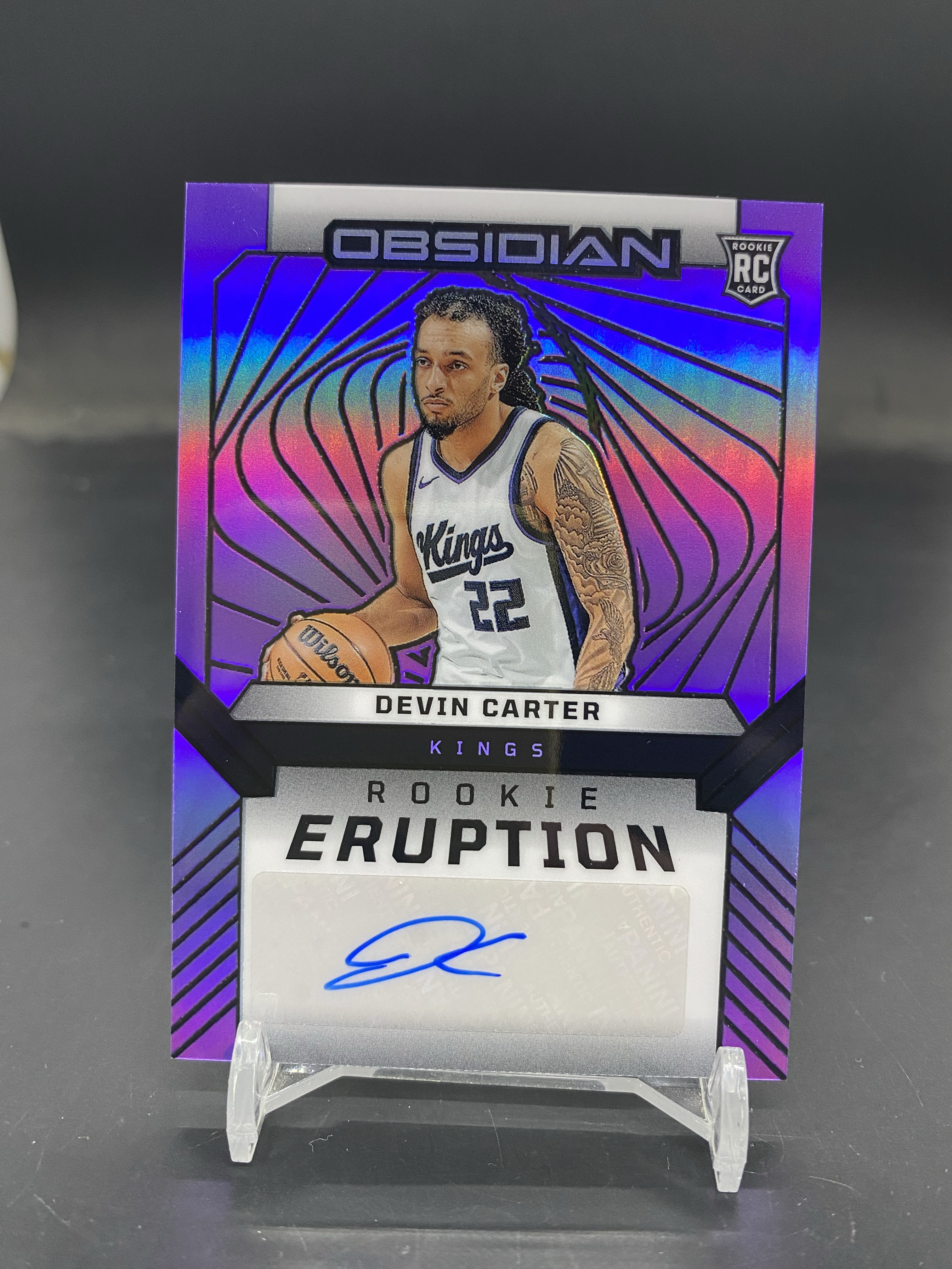 2024-25 Panini Obsidian Devin Carter RC 黑曜石 国王 新秀 德文 卡特 01/49编 首编 紫折 签字 签名 折射 印痕如图CB-01「gc超」