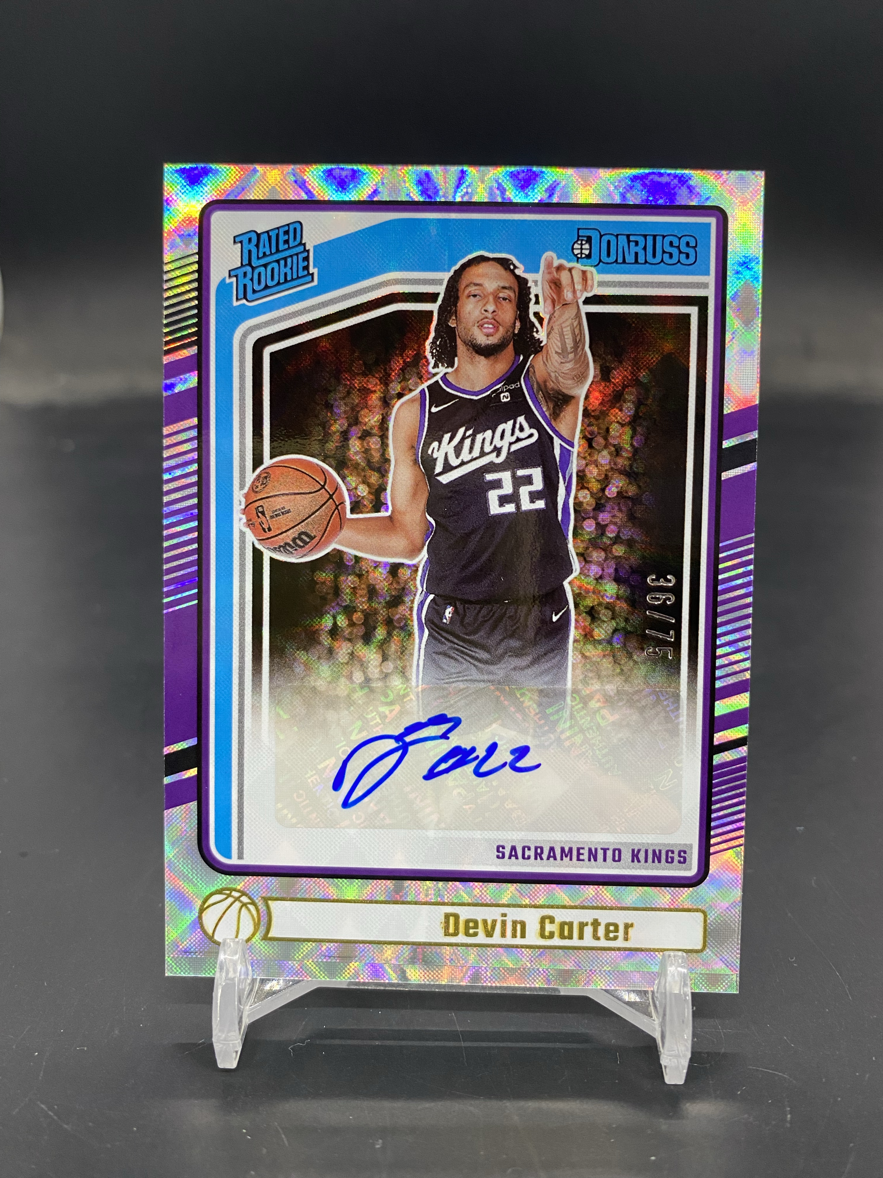 2024-25 Panini Donruss Devin Carter RC 杜蕾斯 国王 新秀 德文 卡特 36/75编 钻石折 背号签 签字 签名 折射 轻印如图CB-02「gc超」
