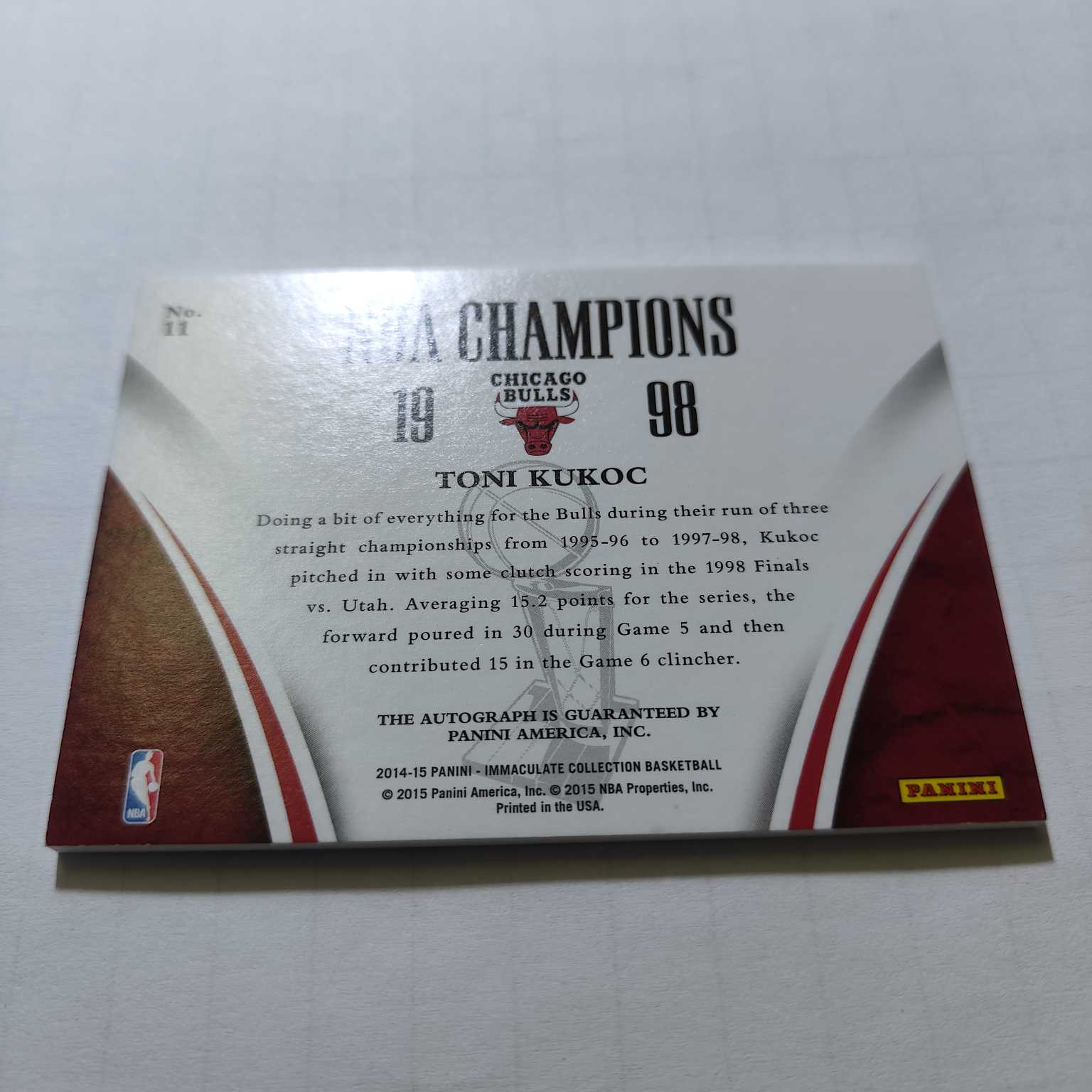 2014-15 Panini Immaculate Collection Toni Kukoc NBA芝加哥公牛托尼库克奇75编卡签丹尼斯罗德曼迈克尔乔丹皮蓬斯蒂夫科尔队友通行品相品相如图有瑕疵