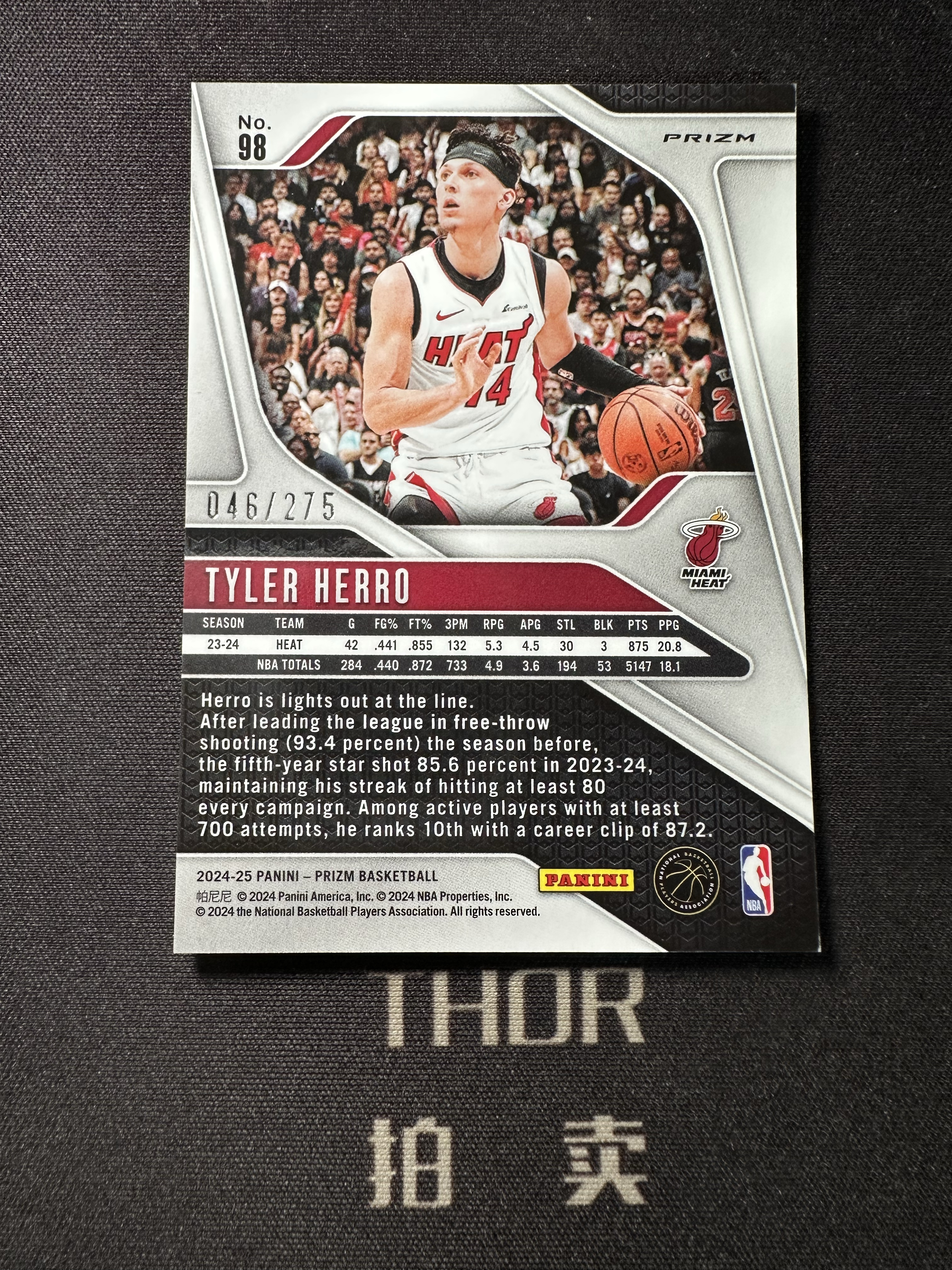 【Thor拍卖】2024-25 Panini Prizm Tyler Herro PZ 热火 泰勒希罗 白镭射折 275编【校长】2