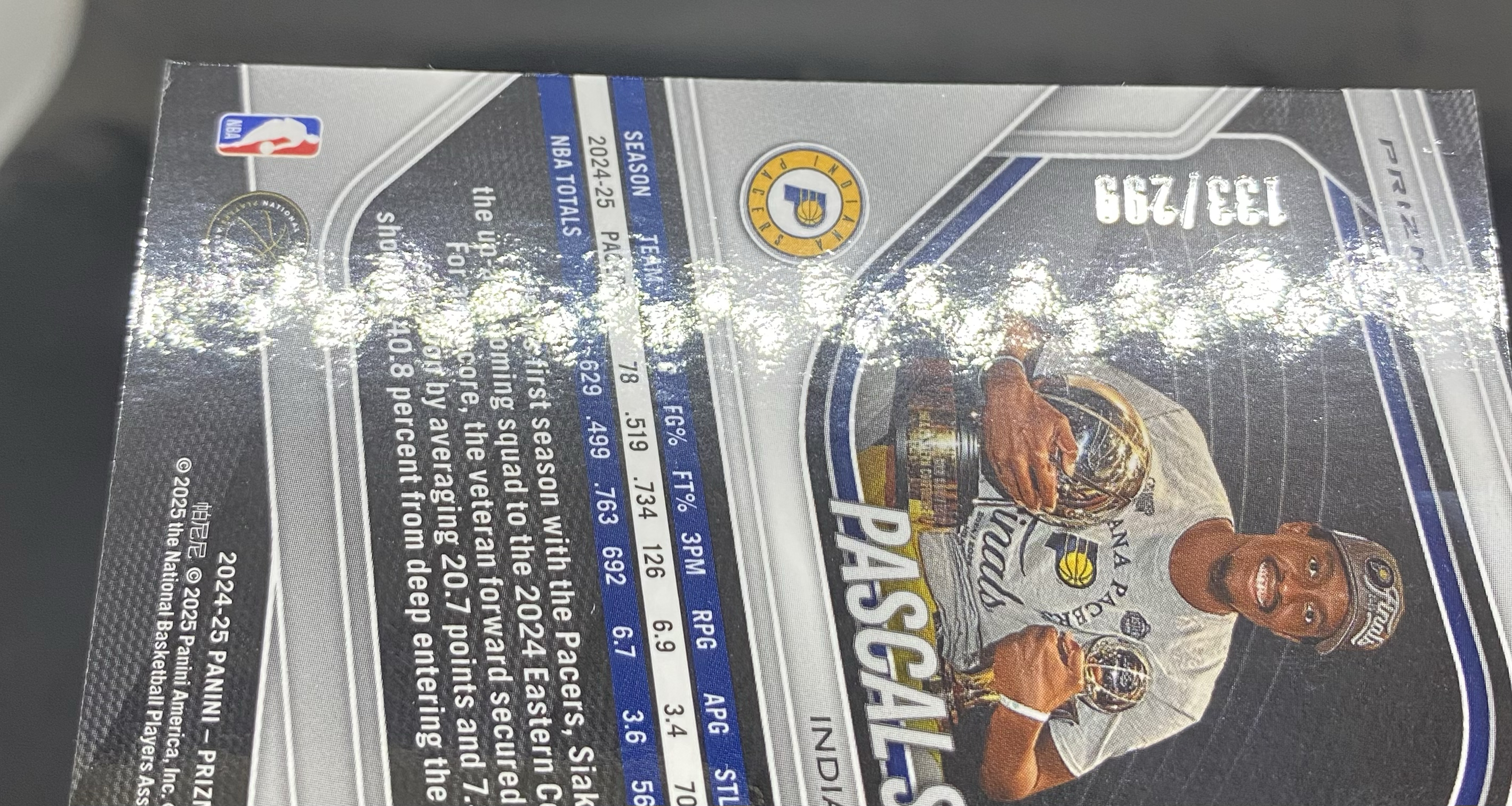 2024-25 Panini Prizm Black Pascal Siakam pz 步行者 帕斯卡尔 西亚卡姆 /299编 红折 捧杯选图 折射 印痕如图CB-13「gc超」