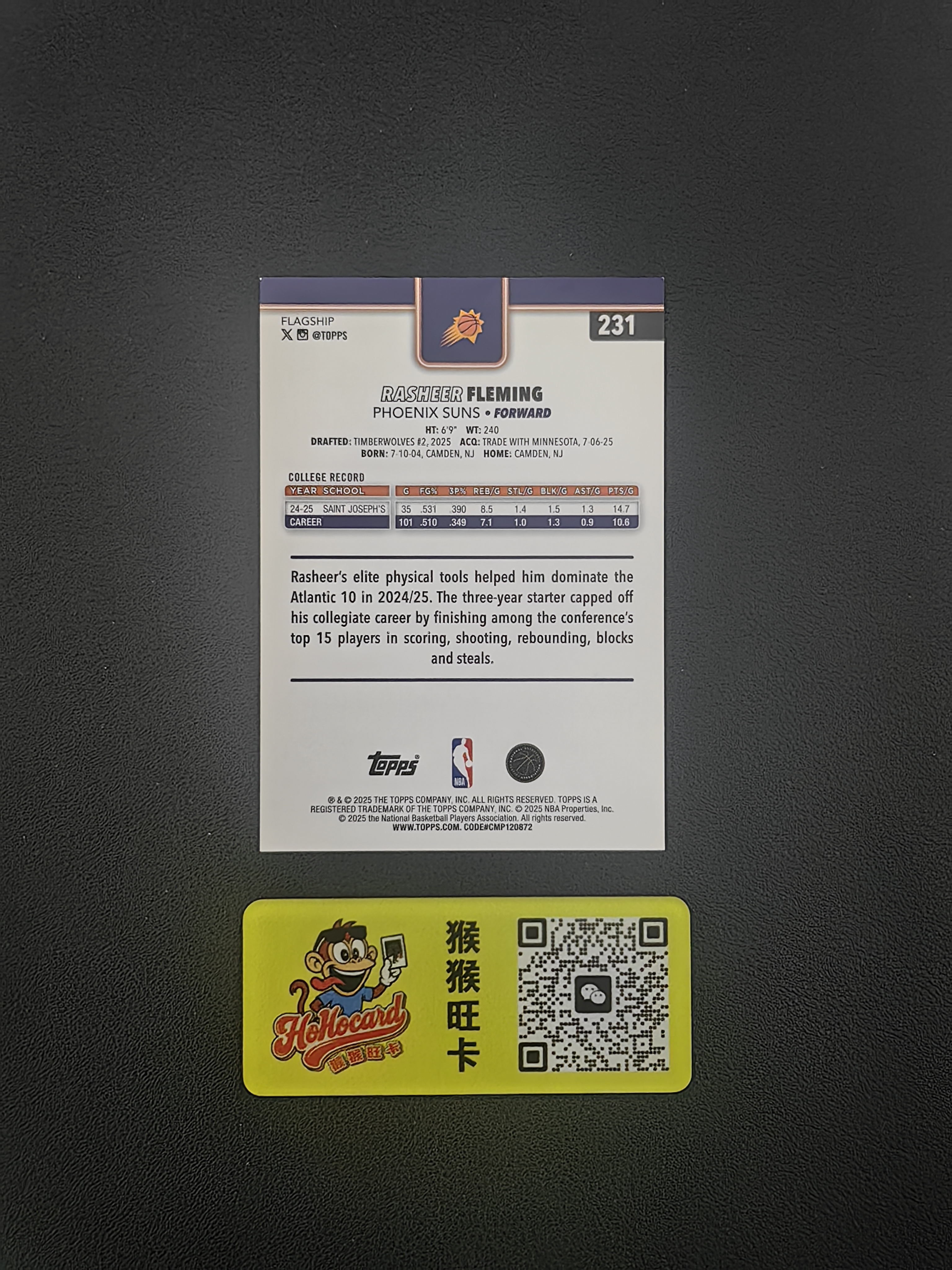 猴猴旺卡首藏俱乐部 "与您共度收藏旅程,让热爱更有意义" 必读!!!请详细阅读拍卖规则后参拍! 出价视为已阅读并同意本俱乐部拍卖规则 【猴猴拍卖】手续费低至0元,急速回款,本俱乐部另有ebay寄售、寄拍、代购业务。微信【HouHoucard】欢迎骚扰,卡社群定期发送福利。 本俱乐部另有直播拆卡业务:抖音搜索猴猴旺卡收藏俱乐部,组队首藏搜索猴猴旺卡收藏俱乐部。 【卡品】1.卡品墨迹如图所示,所见即所得,非厂家印刷、剪裁瑕疵会注明(厚卡异形卡等都有白边白角属于正常情况,部分系列会有特殊瑕疵),单卡上拍无特殊说明则为通行品,特别注重卡品的买家请慎重下单,追求完美请直接下单评级卡。 2.prizm、chrome、竞技场等镜面折射系列正反面有印刷线,卡面有弯曲属于正常通行品相。 3.不接受任何艺术家买卡,如拍到卡后有任何艺术家行为(包括但不限于在通行卡品里挑瑕疵索要赔偿或退卡等)一律拉黑投诉处理。打包标小卡可能会有不同程度的瑕疵,不保障卡品;评级卡壳和原封砖的磨损不包含在卡品范围内。竞拍前可以私聊要细节图,成交后再以有瑕疵、误拍等理由退卡的一律拒绝,介意者请勿参拍!参拍即视为已读同意!截标后以各种理由拒绝付款的行为一律视为鸽子并投诉,因为承接代卖业务,不再接收取消订单行为,下单需要看清,介意勿拍! 【付款】 卡淘规定三天内必须付款。逾期平台必封。 【累计】 1.可累计,累计周期为三天,到期自动发货,建议谨慎累计。千元以上卡暂不支持累计发货。 2.累计请在付款后私信通知,并主动提供“提货码”。 3.因累计造成的卡片纠纷不予处理。 【合并订单】 本店会在每日竞拍结束后统一合并订单,且只合并当日订单。 【发货】 1.本店默认顺丰陆运,山东发货,其他需求请截标后私信告知。不接受到付,避免拒收带来的不必要运输费用,如果有异议可以联系卖家修改运费,需要保价的提前联系。 2.承诺48小时内打包发货,特殊情况(如店铺休假、自然灾害会提前告知买家)。 3.付款后默认发送平台提供地址,任何需求请在发货前通知。 4.本店卡片不论价值均使用保护物料打包发货。 【收货】 收货时务必拍摄开箱视频,以供卡品纠纷时维权证明,快递过程中如果出现包装破损、暴力变形、遗失等问题,请自行联系快递客服理赔,提供购买记录和物流记录即可。 本店客服每日不定时上线统一回复。 感谢各位老板支持!