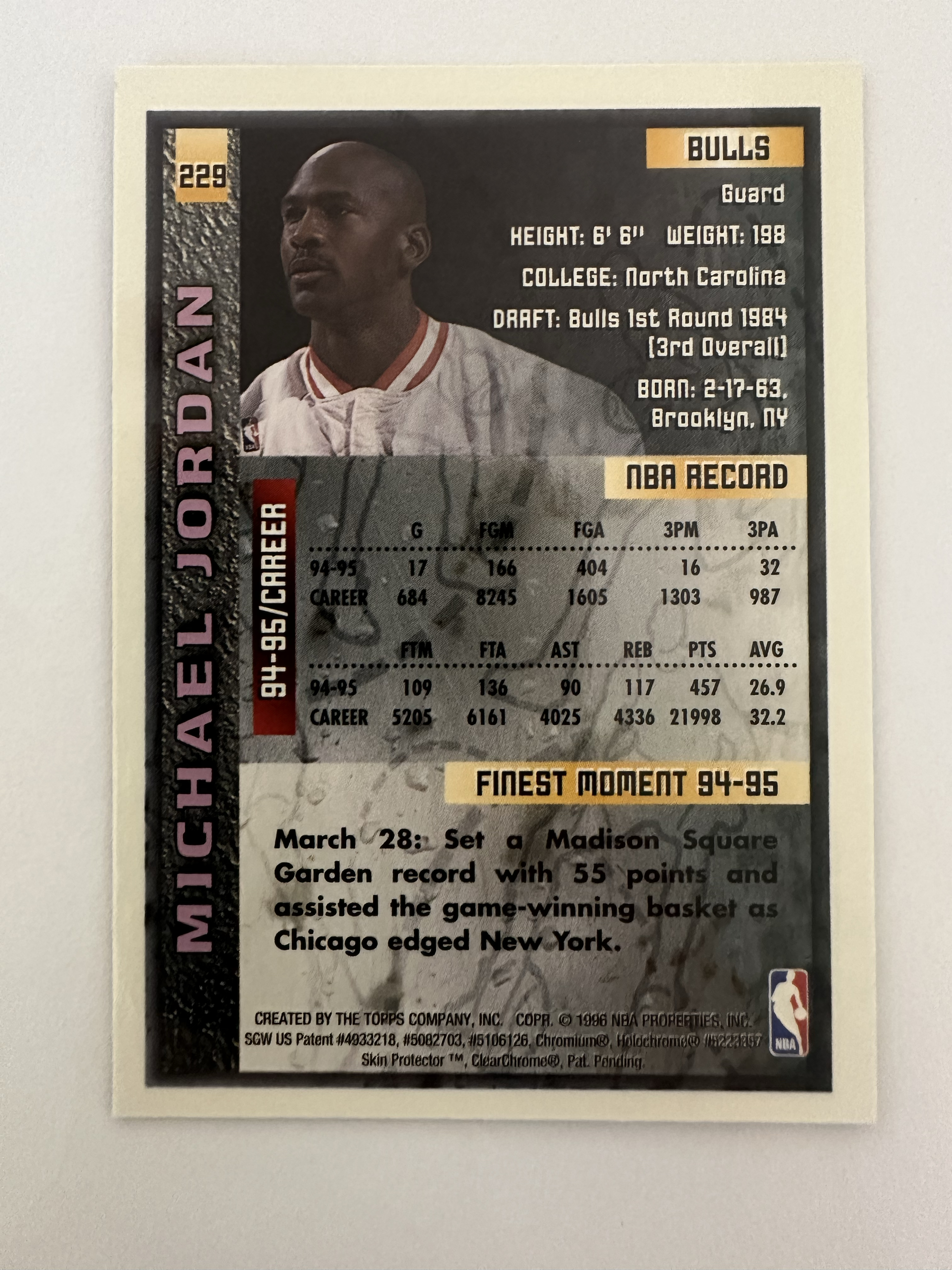 1995-96 Topps Finest Michael Jordan 迈克尔乔丹经典base 绿色版本 大比例老特球星卡