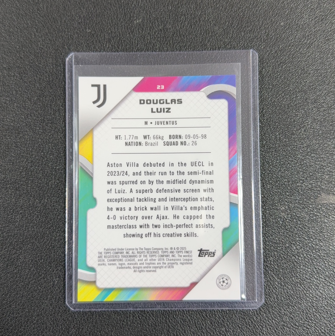 2025 Topps Finest Douglas Luiz 限量225/275编 尤文图斯 道格拉斯 路易斯 新拆盒子 拆盒及上膜上夹 肉眼未见明显瑕疵