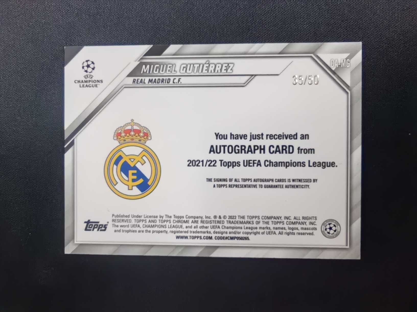2021-22 Topps Chrome Miguel Gutiérrez RC 欧冠TC 皇马 赫罗纳 那不勒斯 米格尔 古铁雷斯 /50编 正金折 同背号 35/50编 签字 签名卡 同背新秀签字
