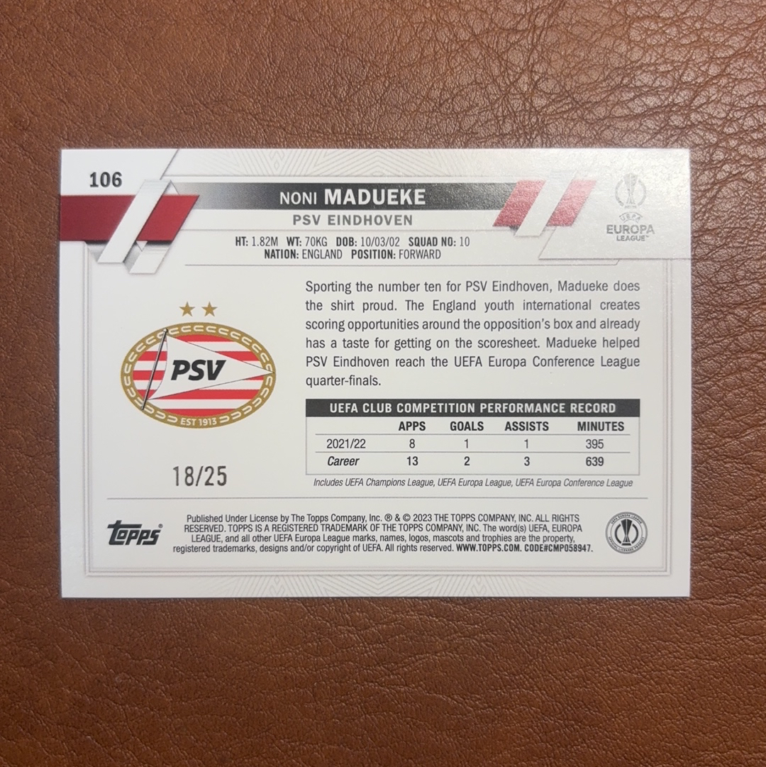 2023 Topps UEFA Champions League Noni Madueke 【耳朵拍卖】马杜埃凯 埃因霍温 切尔西 欧冠 低编 25编 金闪电折 收藏必入 瑕疵见图 MINGK
