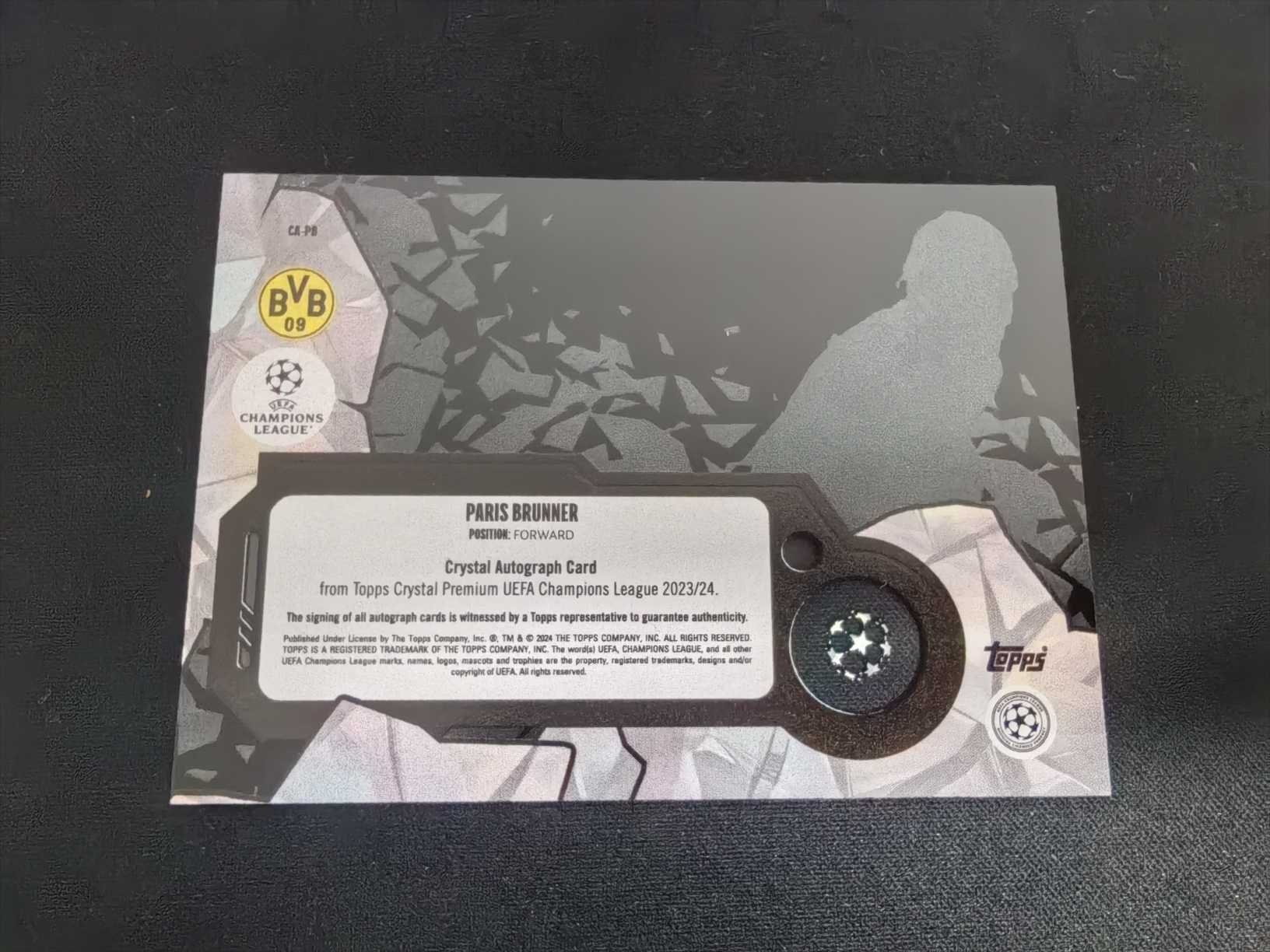 2023-24 Topps crystal Paris Brunner RC 欧冠水晶 帕里斯 布伦纳 多特蒙德 摩纳哥 新秀RC 德国u20主力中锋 /50编 签字 签名卡 未来可期 专收投资必备好卡