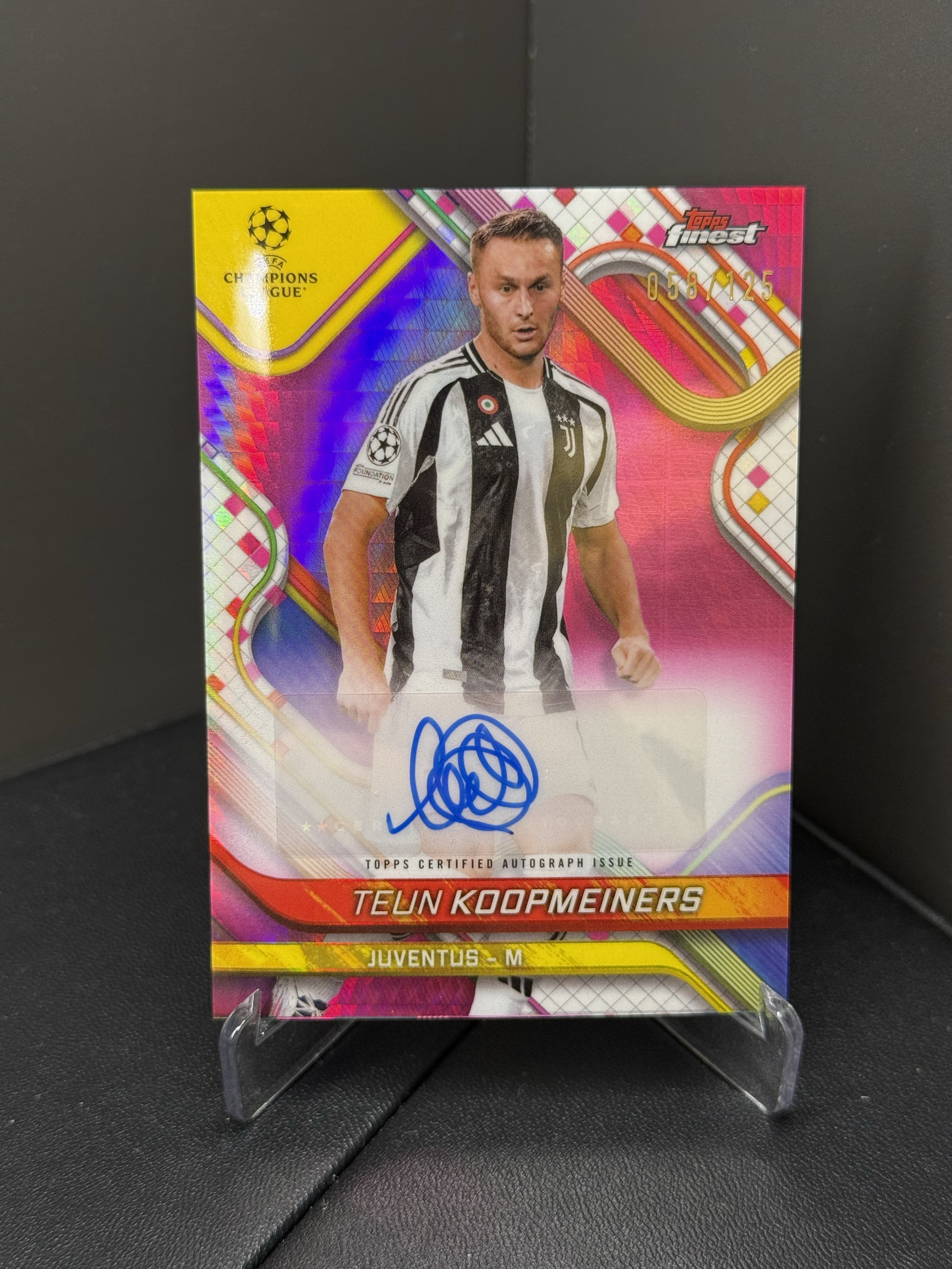 2024-25 Topps Finest Teun Koopmeiners 欧冠 尤文图斯 特恩 库普梅纳斯 粉棱镜折 125编 签字 收藏必备 瑕疵如图 代拍私信