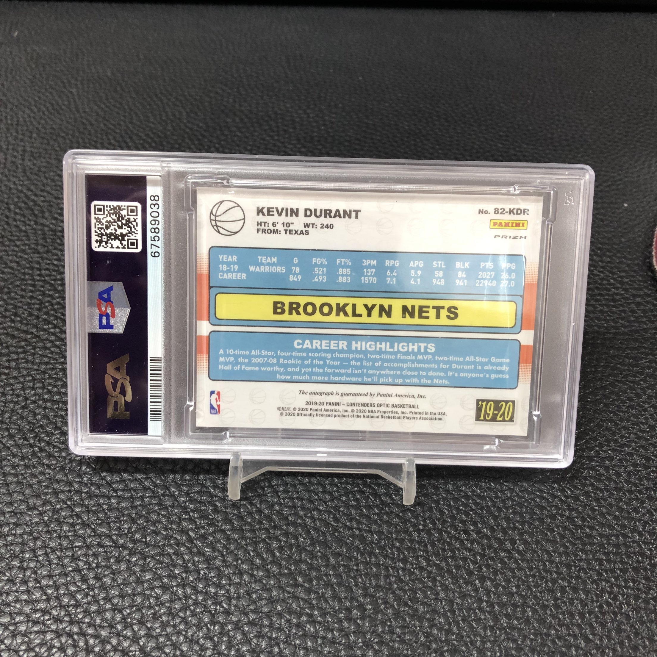 【浩行拍卖 截标预付82%】2019-20 panini contenders optic Kevin Durant 球票 篮网 凯文 杜兰特 KD 死神 签字 卡签 复古签 银折 折射 PSA9 评级壳微瑕 专收必备「凑整重上」1120龘