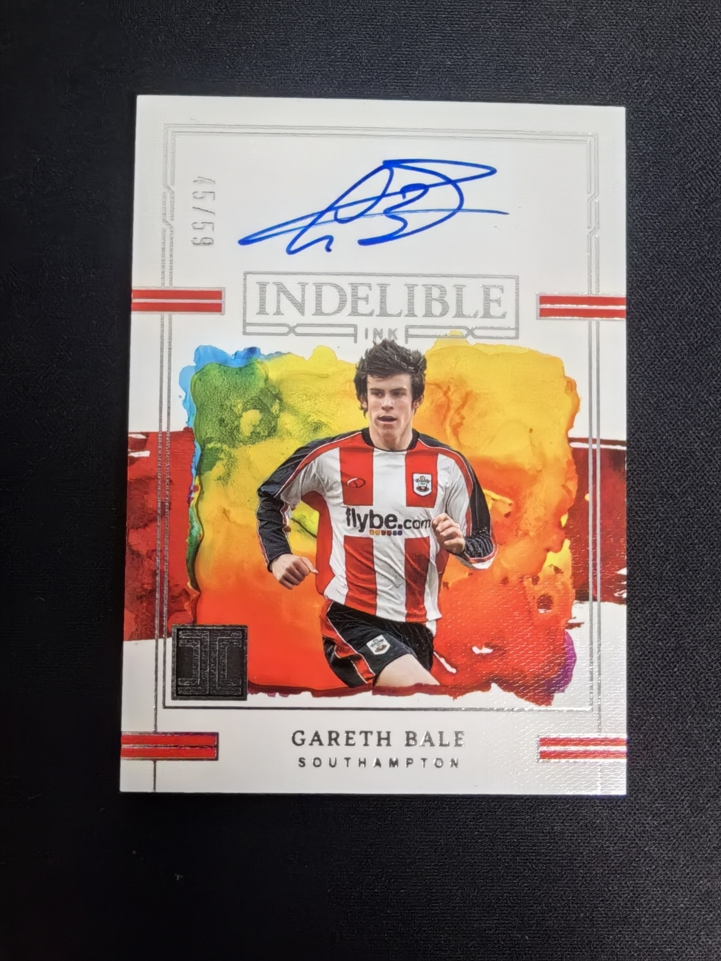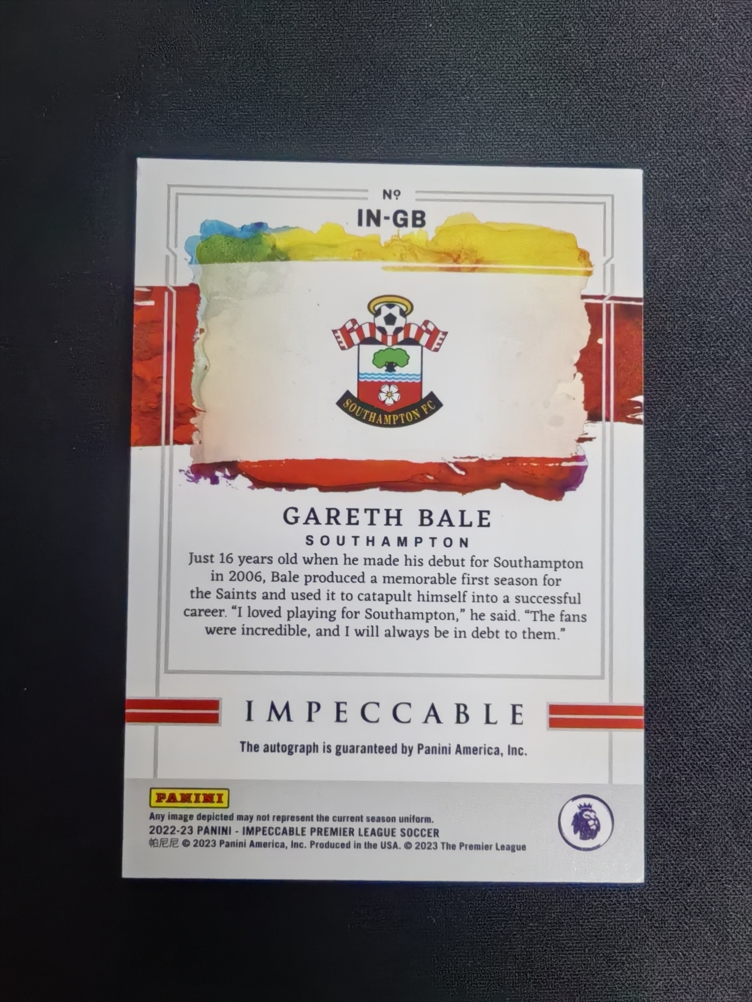 2022-23 Panini Impeccable Gareth Bale 小真金 加雷斯 贝尔 威尔士历史第一人 大圣 南安普顿 热刺 皇马 青涩选图 INK签 卡签 签字 /59编 银版平行 贾斯丁