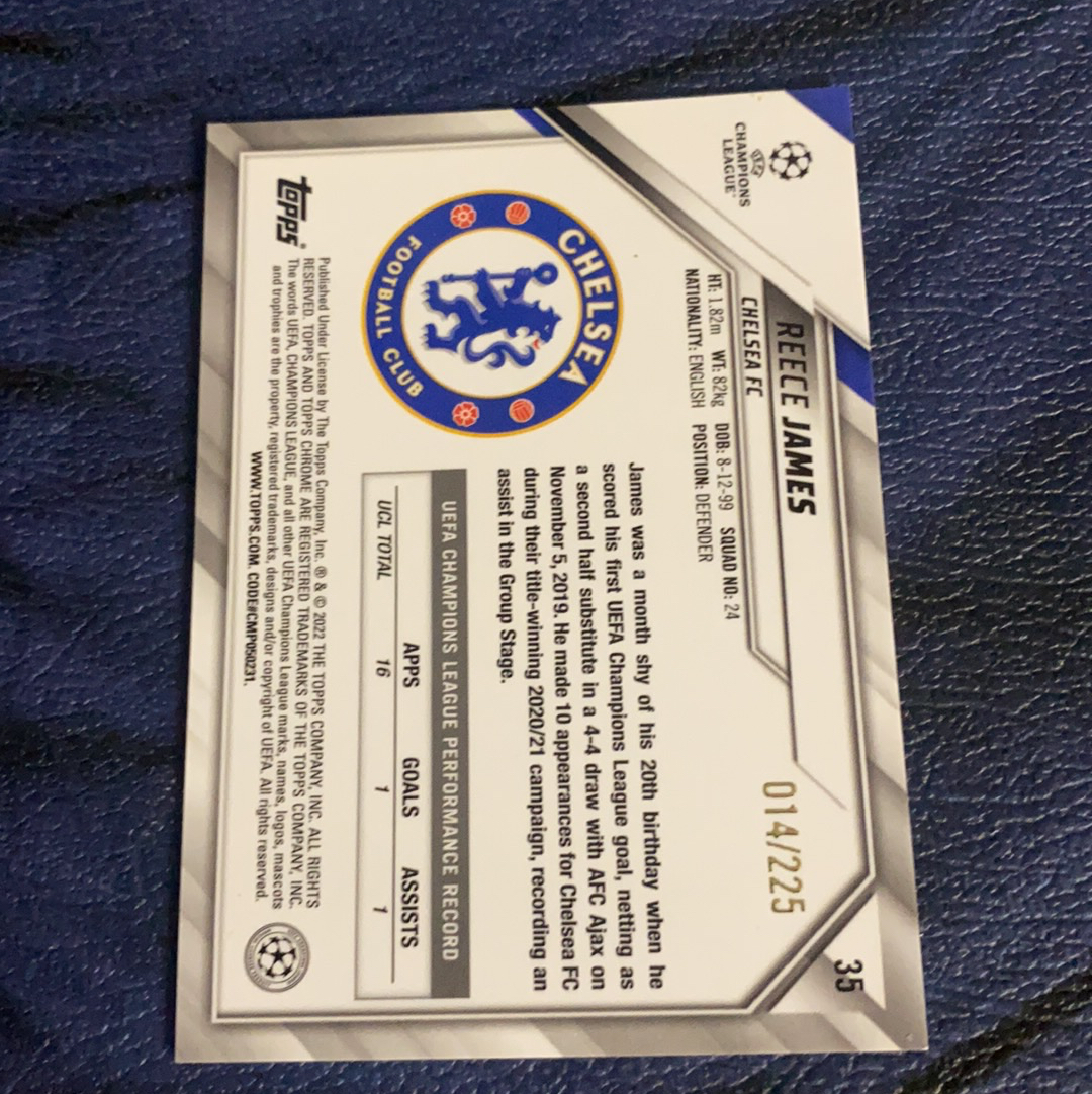 2022 Topps Chrome Reece James 里斯 詹姆斯 切尔西 欧冠 夜光折 014/225编 收藏必备(小皮