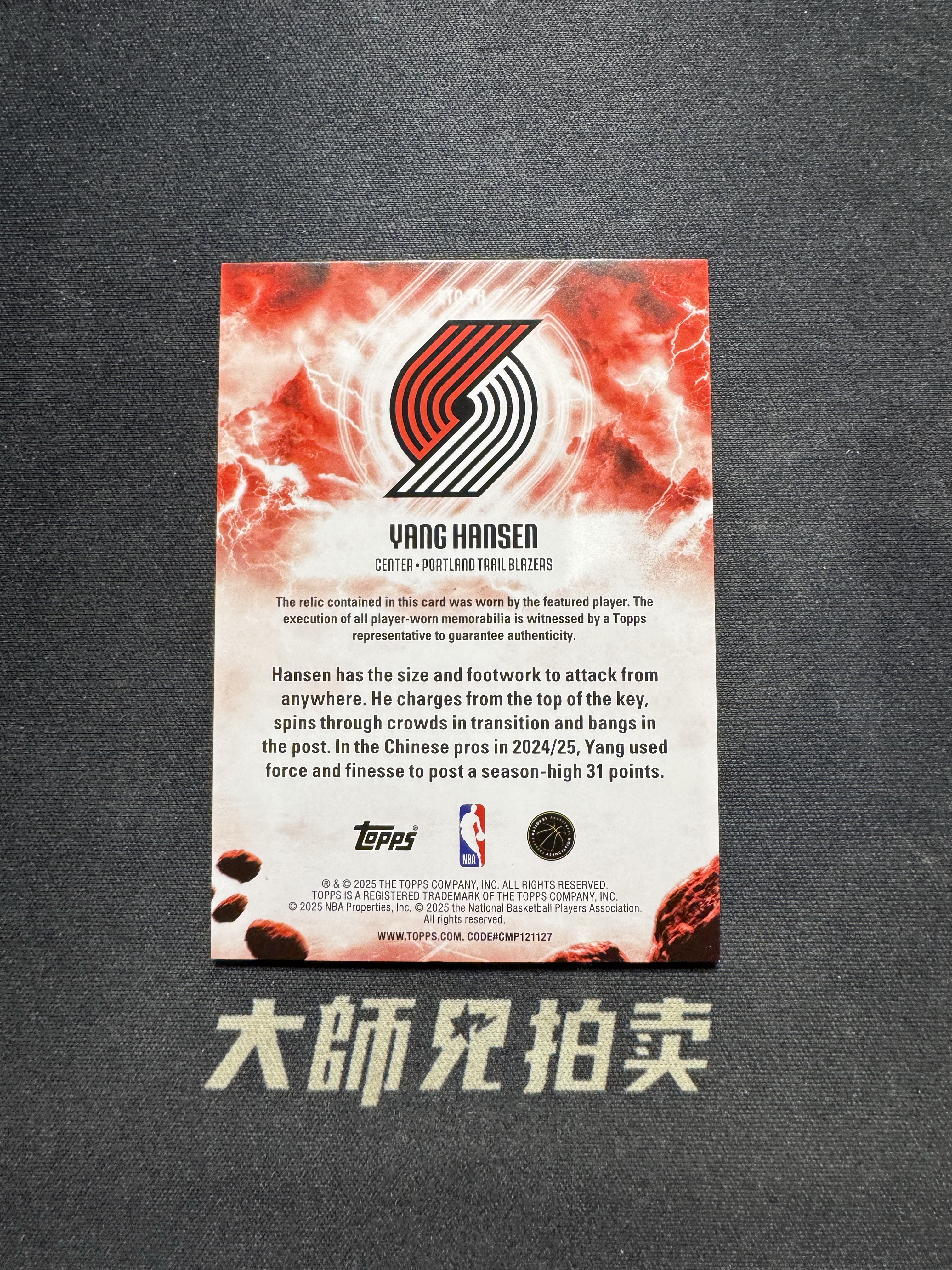 【大师兄拍卖】2025-26 Topps FLAGSHIP YANG HANSEN RC 开拓者 杨翰森 新秀 元年 小窗亲穿球衣物料 gu 微瑕如图-Jacky-