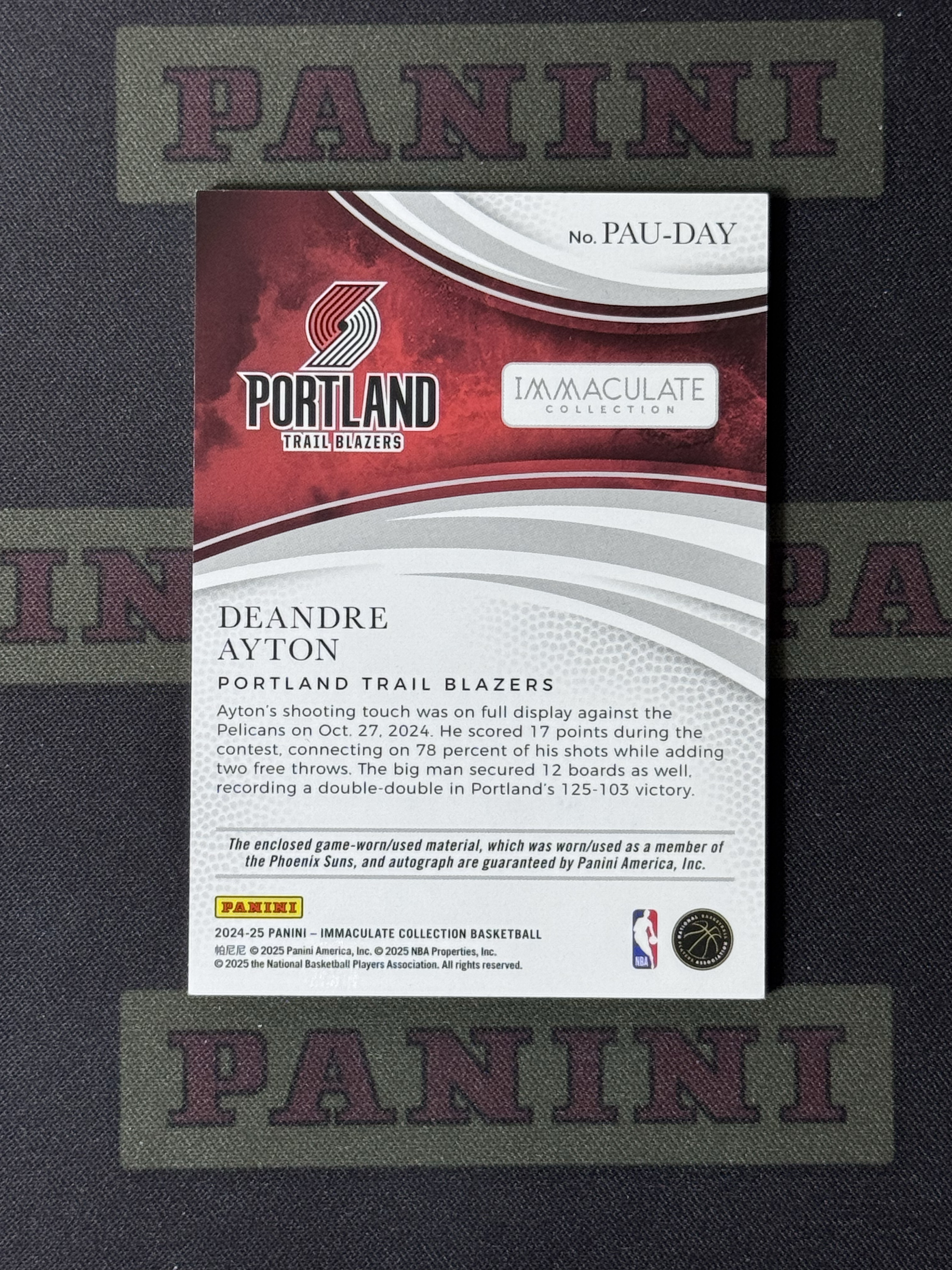 2024-25 Panini Immaculate Deandre Ayton 【卡掌柜代拍】开拓者 德安德烈 艾顿 顿宝 詹姆斯东契奇队友 首发内线 签字 1/1 物料1of1 投资必选 卡品如图