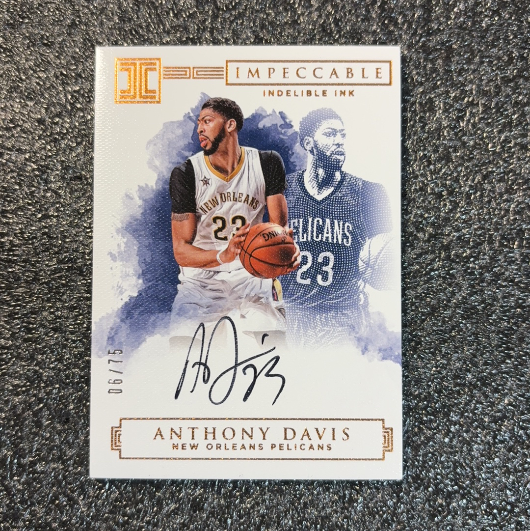 2016-17 Panini Impeccable Anthony Davis 【JZH拍卖】小真金 安东尼 戴维斯 浓眉 鹈鹕 签字 卡签 双选图 背号签 Ink签 /75编 汪总