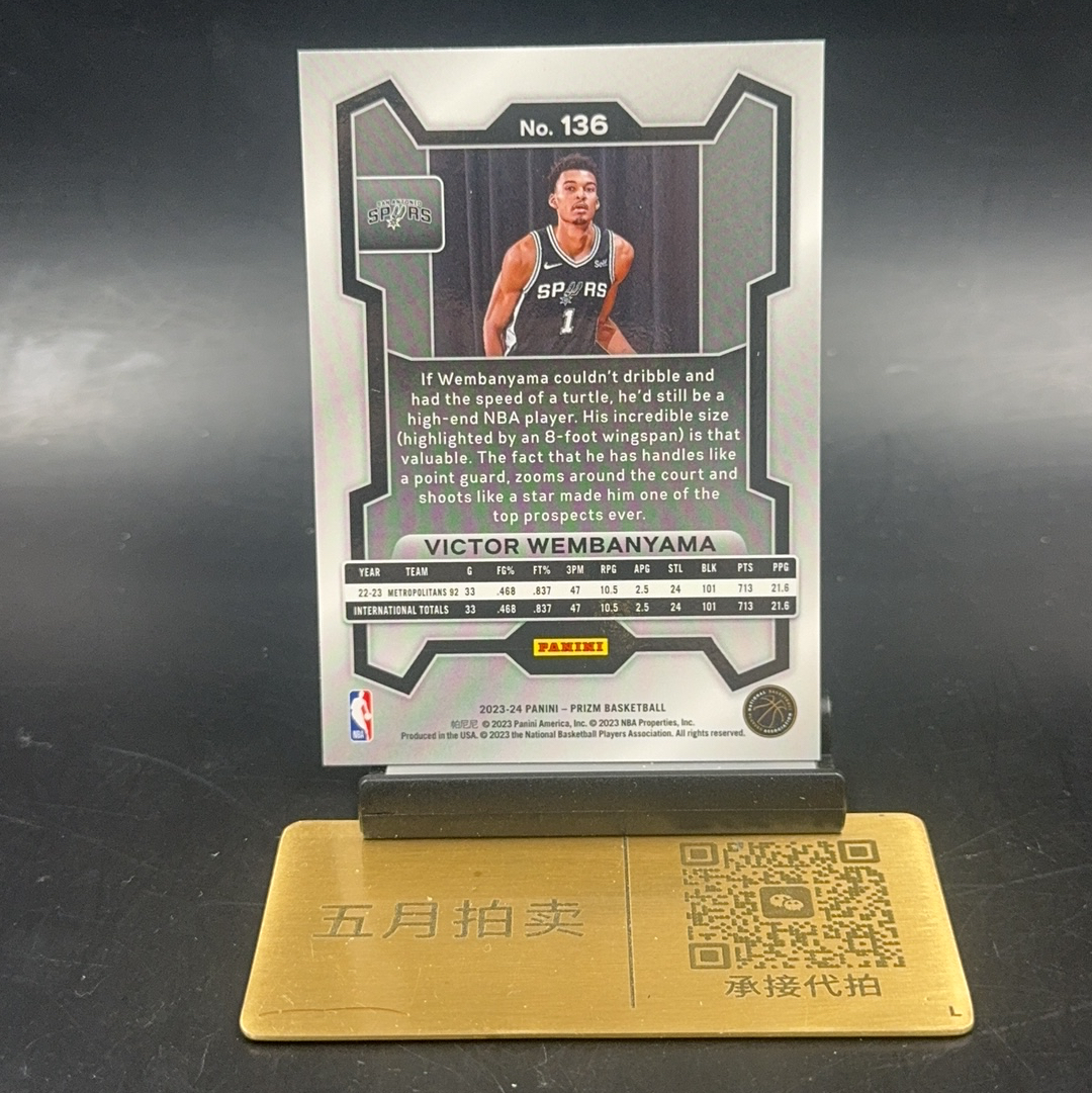 2023-24 Panini Prizm Victor Wembanyama RC 【五月拍卖 顺丰空运】马刺 新秀 维克托 文班亚马 正base 卡品如图 寿光69