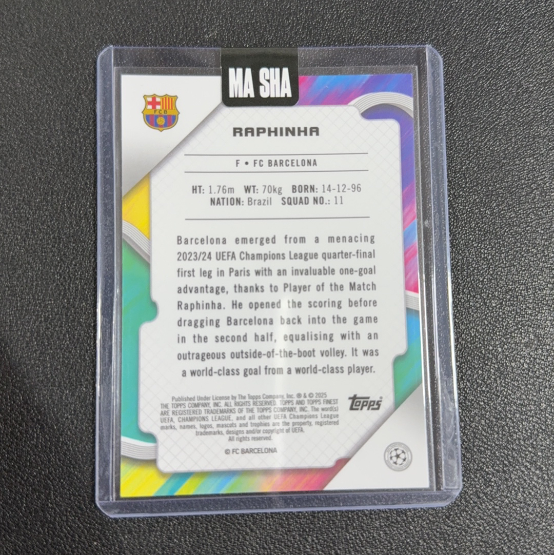 2025 Topps Finest Raphinha 限量181/250编 巴塞罗那 拉菲尼亚 新拆盒子 拆盒及上膜上夹 肉眼未见明显瑕疵