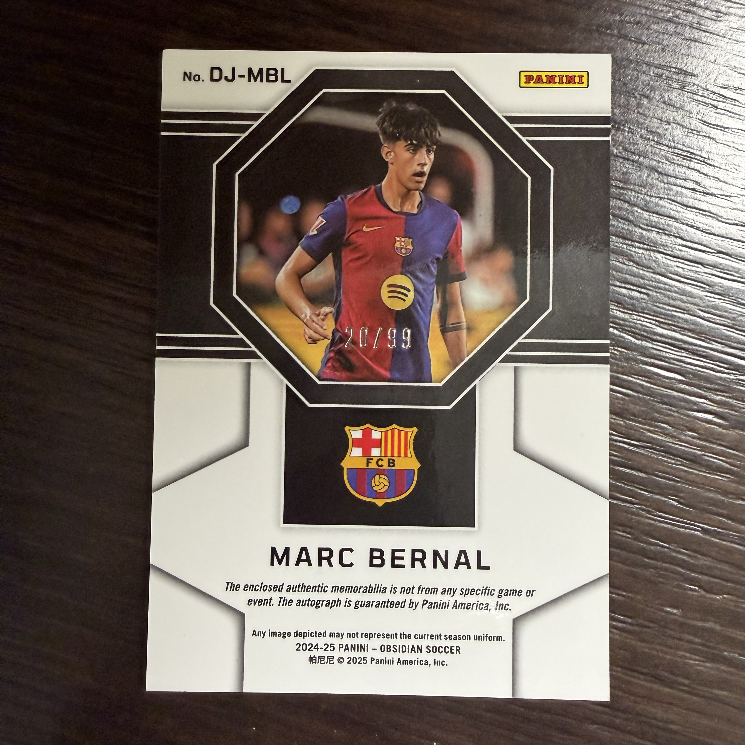 2024-25 Panini Obsidian Marc Bernal 马尔科 贝尔纳尔 新秀RC 巴萨 巴塞罗那 99编 签字 双窗球衣物料 红平行 黑曜石 【默认微瑕一日一快递 不发到付】王🫅