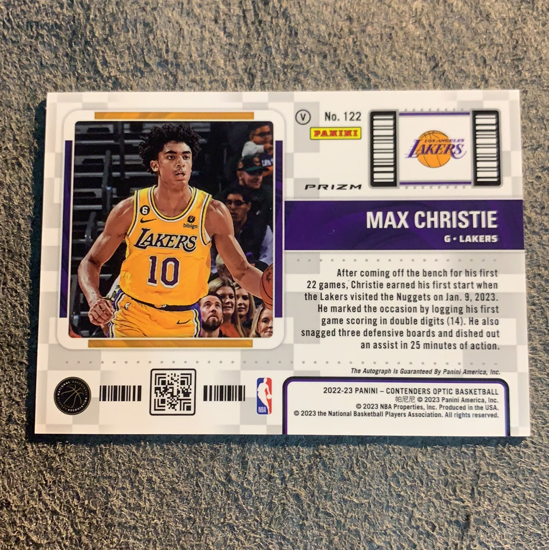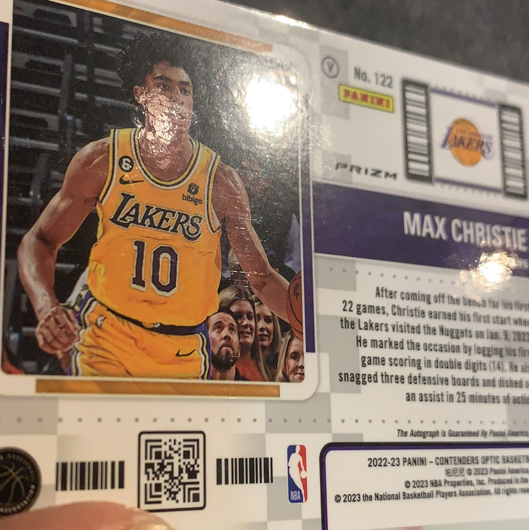 2022-23 Panini Contenders Max Christie RC 新秀 马克西 克里斯蒂 签字 卡签 正银折 球票optic 湖人 独行侠新星 詹姆斯 里夫斯 弗拉格队友 轻印刷线