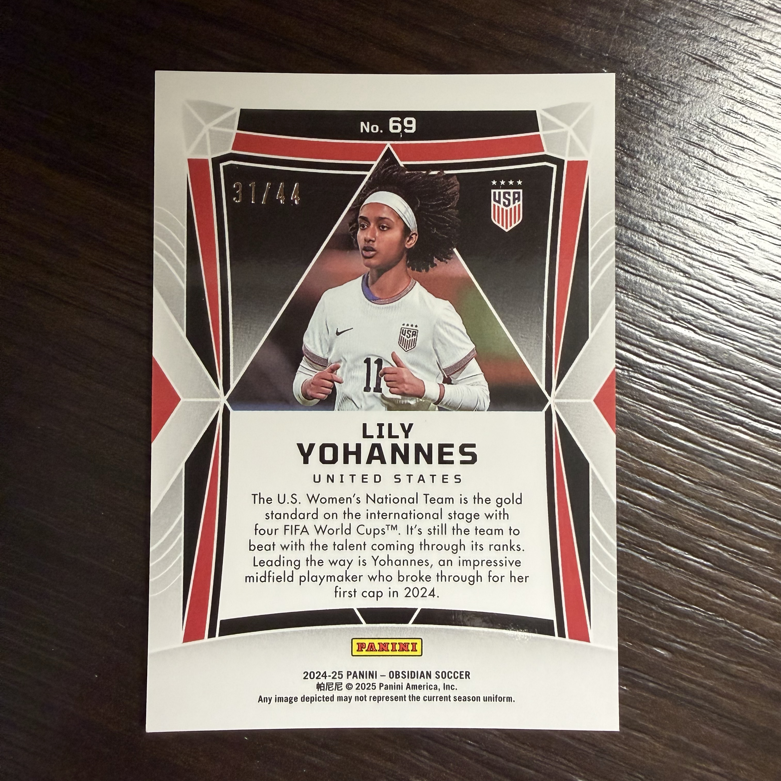 2024-25 Panini Obsidian LILY YOHANNES RC 黑曜石 美国 女足 新秀 莉莉 约翰尼斯 /44编 新秀 RC【默认微瑕一日一快递 不累计 不发到付】王🫅