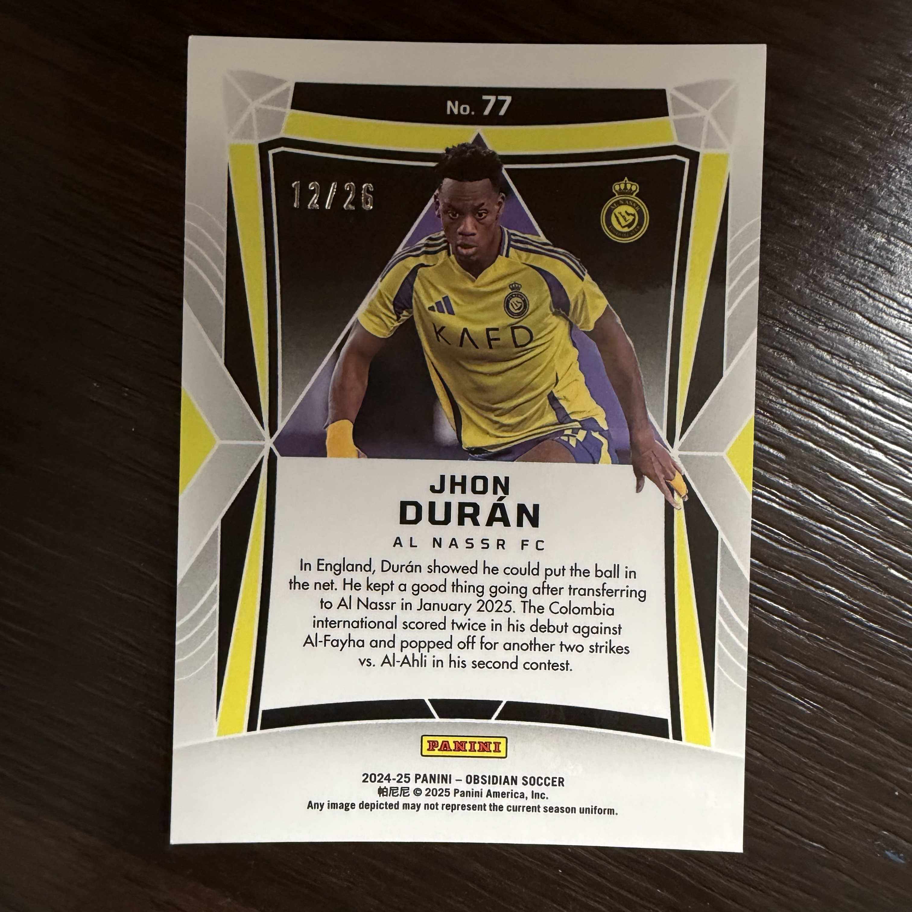 2024-25 Panini Obsidian Jhon Duran 黑曜石 利雅得胜利 约翰 杜兰 26编 帝王玉折 帝王绿折 折射 【默认微瑕一日一快递 不累计 不发到付】王🫅