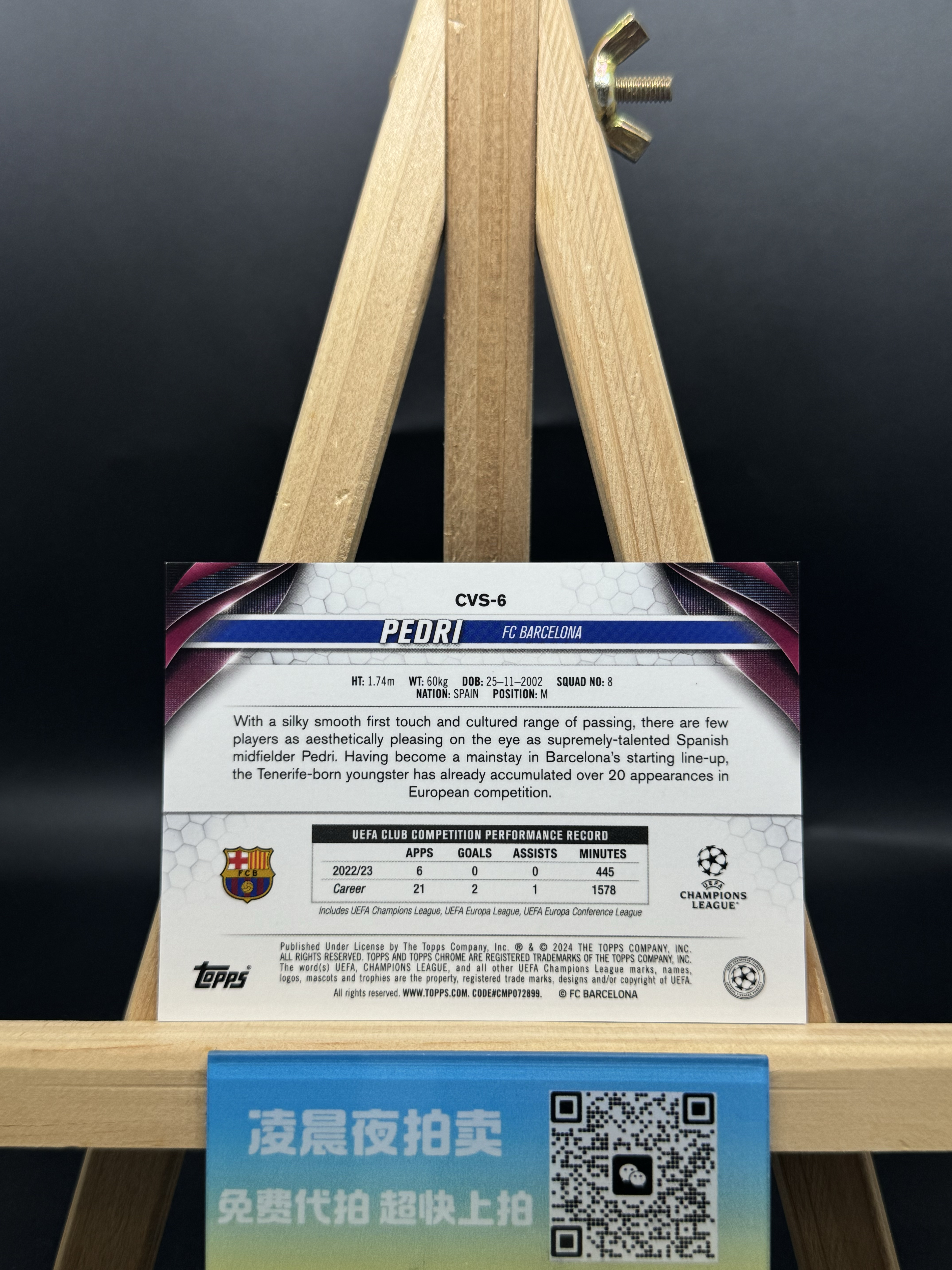 【凌晨夜免费代卖】2024 Topps Chrome 欧冠蓝宝石 Pedri 佩德里 巴塞罗那 西班牙 大比例 变化版 蓝碎冰折 碎冰折 蓝折 折射 收藏必备 凑套必备【lon】