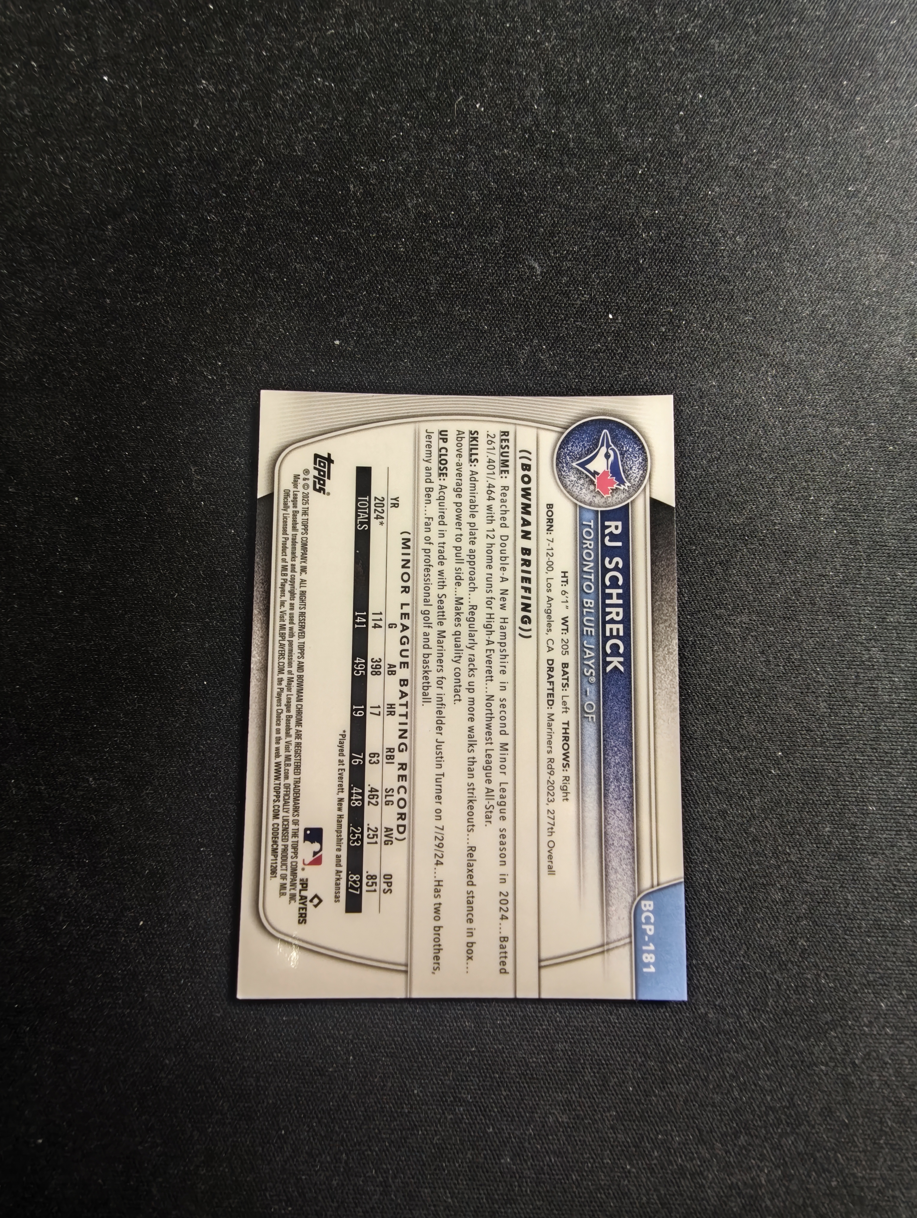 2024 Panini 小光头 不累计 棒球 TOPPS BOWMAN CHROME 1ST 99编 RJ SCHRECK 菠萝