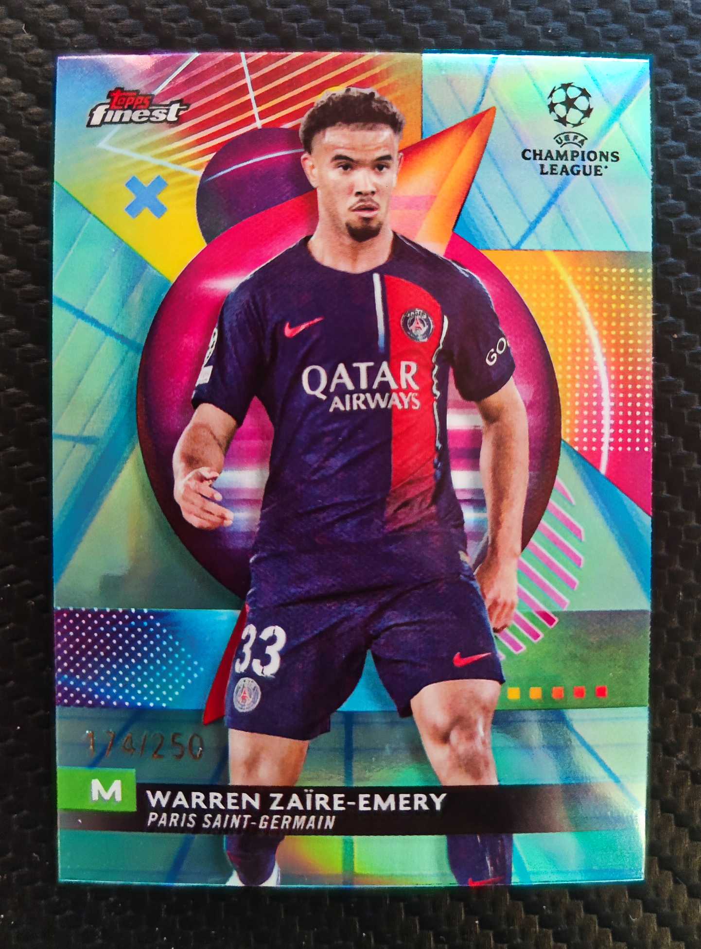 2025 Topps Finest Warren Zaïre-Emery 欧冠 法国 巴黎 太子爷 埃梅里 250编 蓝折射 实卡精美 卡品见图 阅读描述 小王