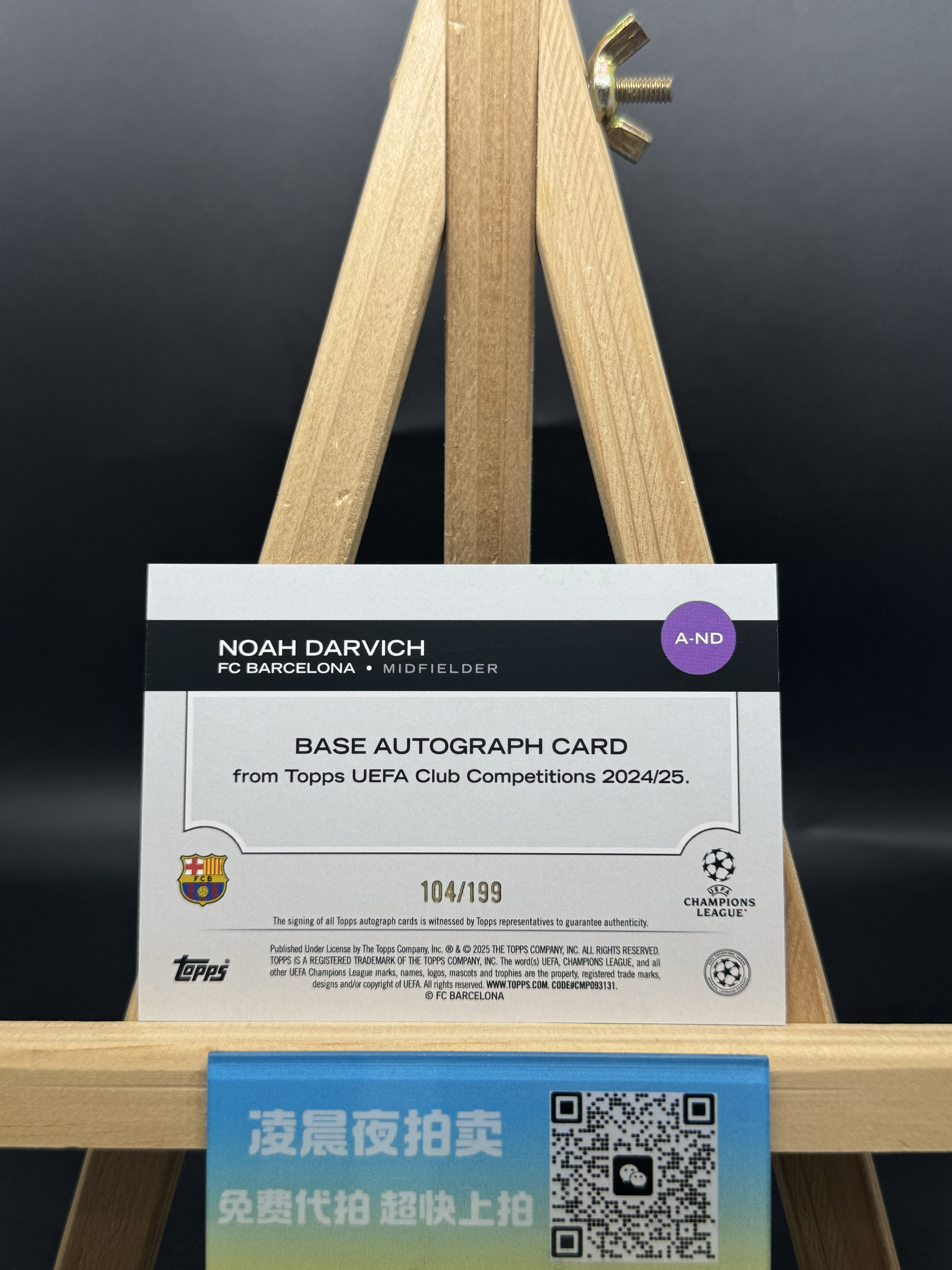 【凌晨夜免费代卖】2025 Topps Noah Darvich 新秀RC 欧战 UCC 巴萨 诺阿 达尔维奇 签字 104/199编 绿折 折射 投资必备 收藏必备 凑套必备【lon】