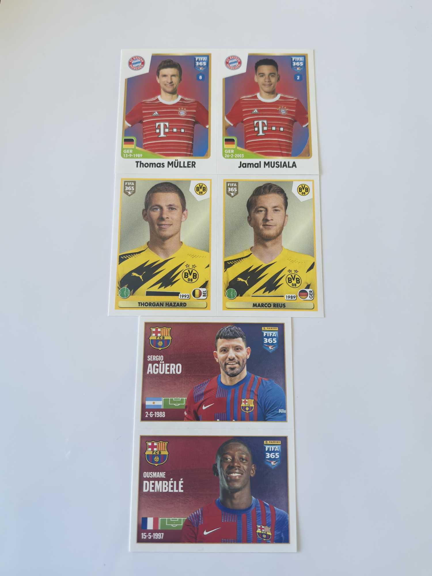 Panini Fifa365 stickers,巴萨双人联线#金球奖🇫🇷登贝莱&阿坤🇦🇷阿圭罗#拜仁🇩🇪托马斯穆勒&穆夏拉多特🇩🇪罗伊斯&阿扎尔#卡品如图