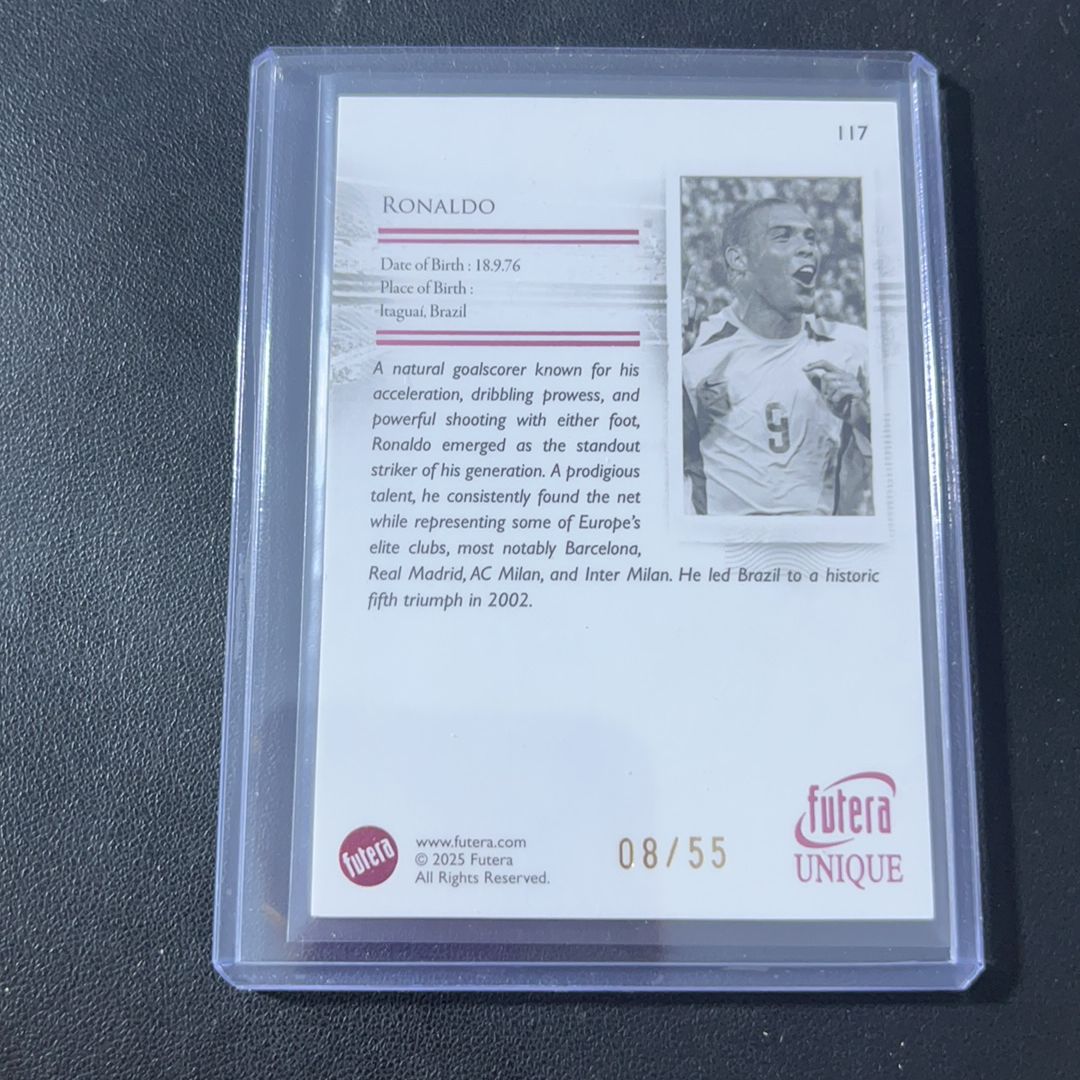2025 Futera Unique . 【小二哥拆卡】2025 福特拉 Futera 足球 08/55编 巴西 罗纳尔多 Ronaldo 默认瑕疵 收藏必备 猫