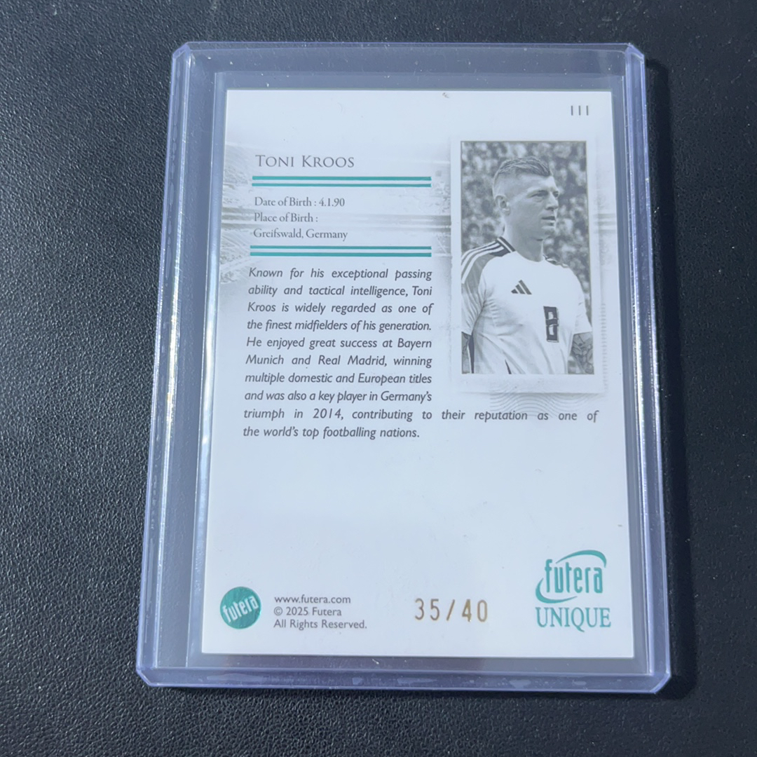 2025 Futera Unique . 【小二哥拆卡】2025 福特拉 Futera 足球 35/40编 德国 托尼·克罗斯 Toni Kroos 默认瑕疵 收藏必备 猫