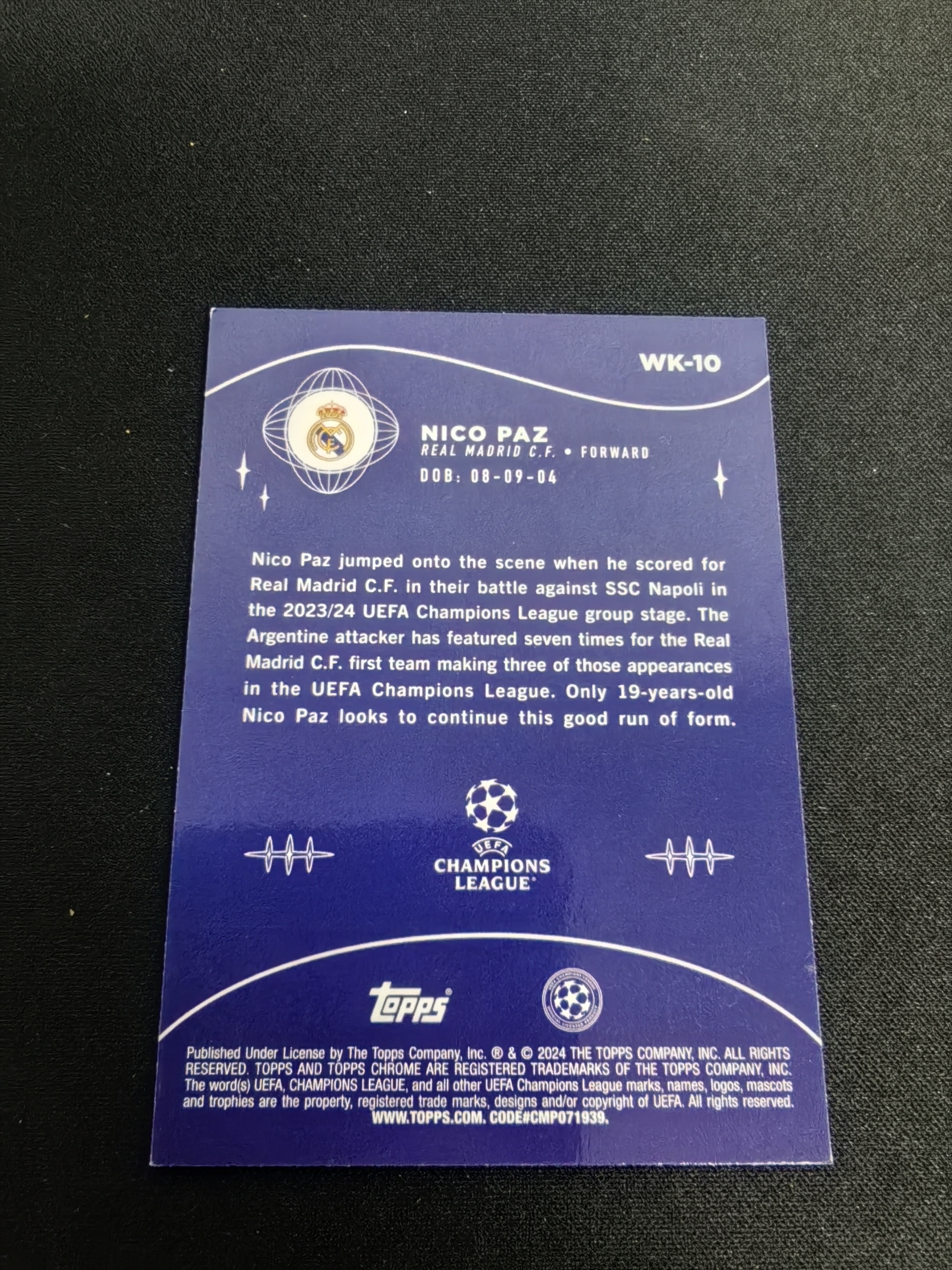 2023-24 Topps Chrome nico paz RC 欧冠TC 皇马 科莫 尼科 帕斯 帕兹 新秀RC 神奇小妖特卡 金熔岩折 默认比例50编 专收必备投资好卡 kane