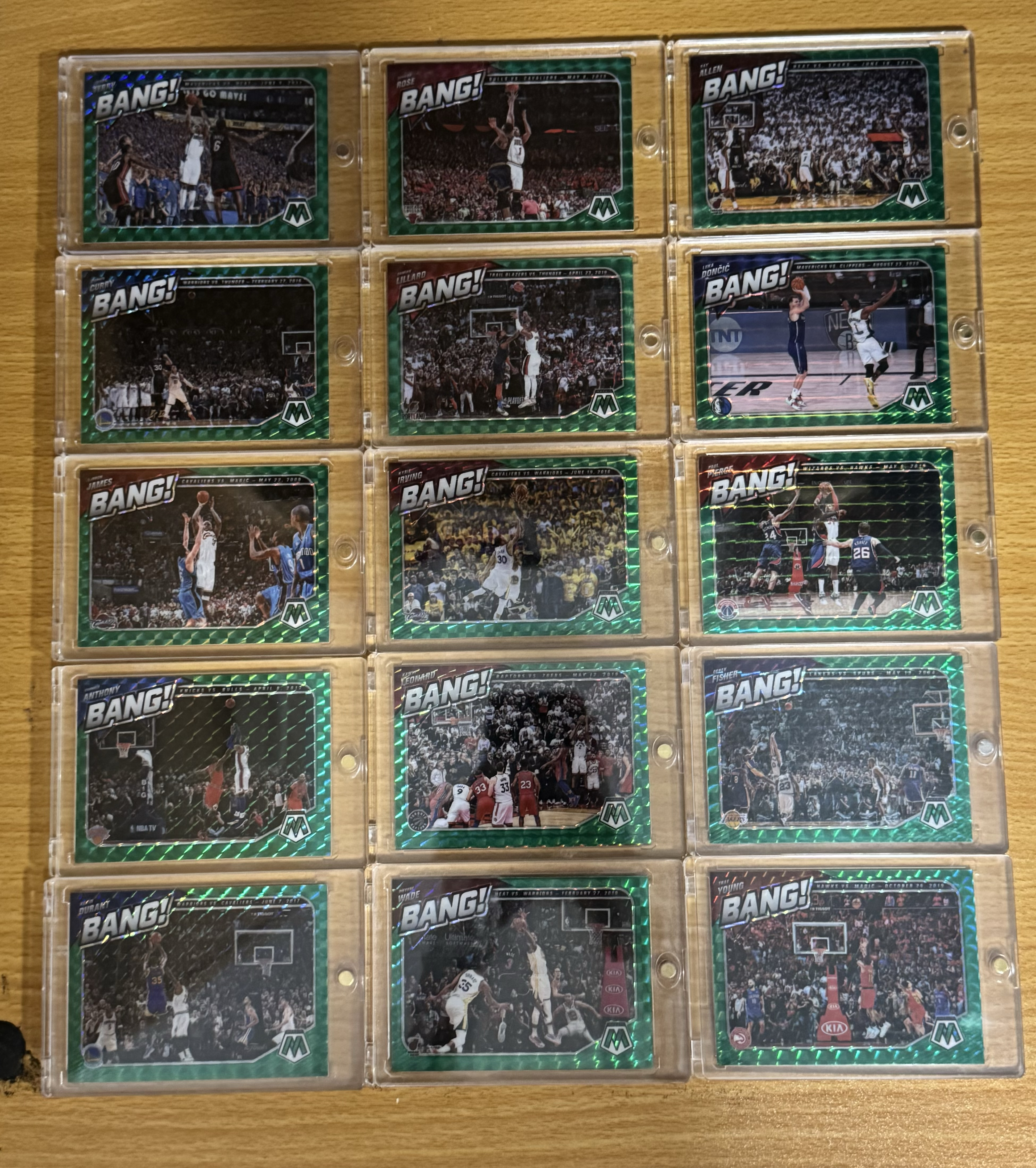 【凌晨夜代卖】2020-21 马赛克 BANG 绝杀时刻 特卡 含东契奇 库里 利拉德 勒布朗 韦德 杜兰特 特雷杨 雷阿伦 罗斯 欧文 伦纳德 绿折 折射 一套 整套 全套 15张齐 不重复 送砖
