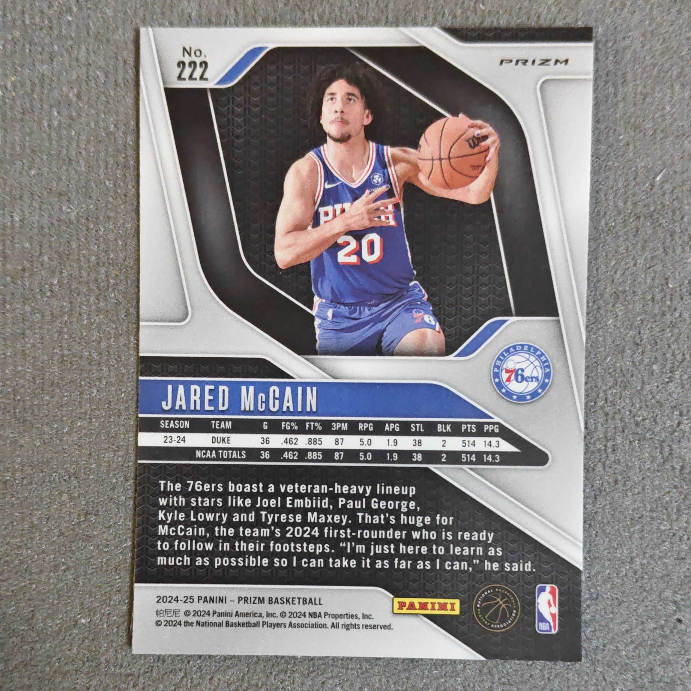 2024-25 Panini Prizm Jared McCain RC PZ系列 新秀RC 贾里德 麦凯恩 正银折射 76人 魔仙哥 未来可期 值得珍藏