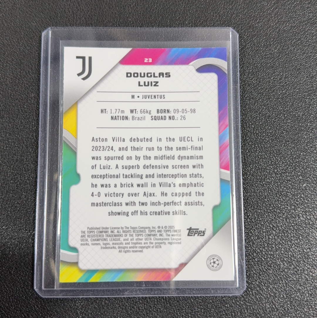 2025 Topps Finest Douglas Luiz 限量167/250编 尤文图斯 道格拉斯 路易斯 新拆盒子 拆盒及上膜上夹 肉眼未见明显瑕疵