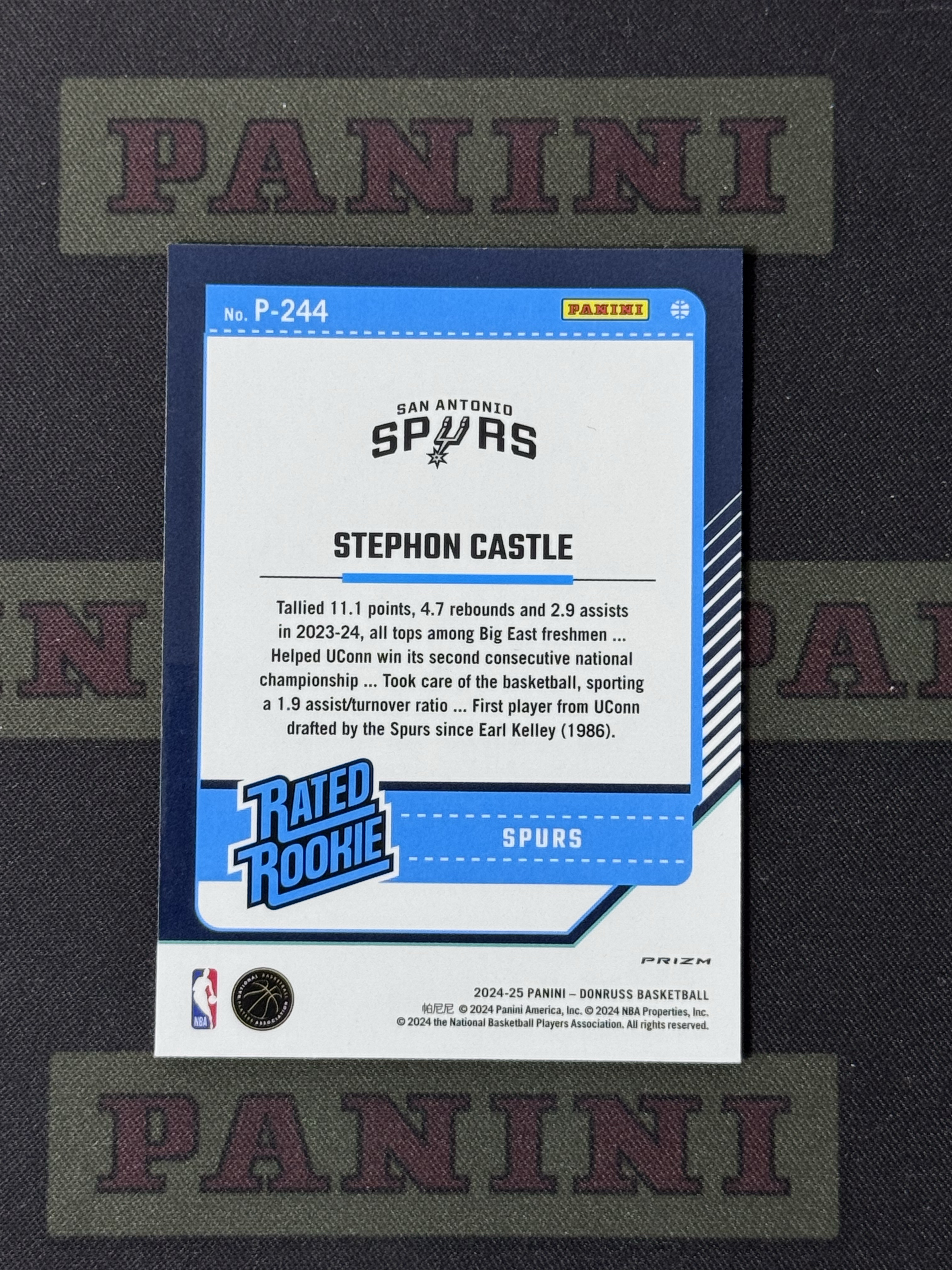 2024-25 Panini Donruss Stephon Castle 【卡掌柜代拍】马刺 斯蒂芬 卡斯尔 新秀 rc 蓝波纹折 大比例 插入 折射 福包必备 投资必选 卡品如图
