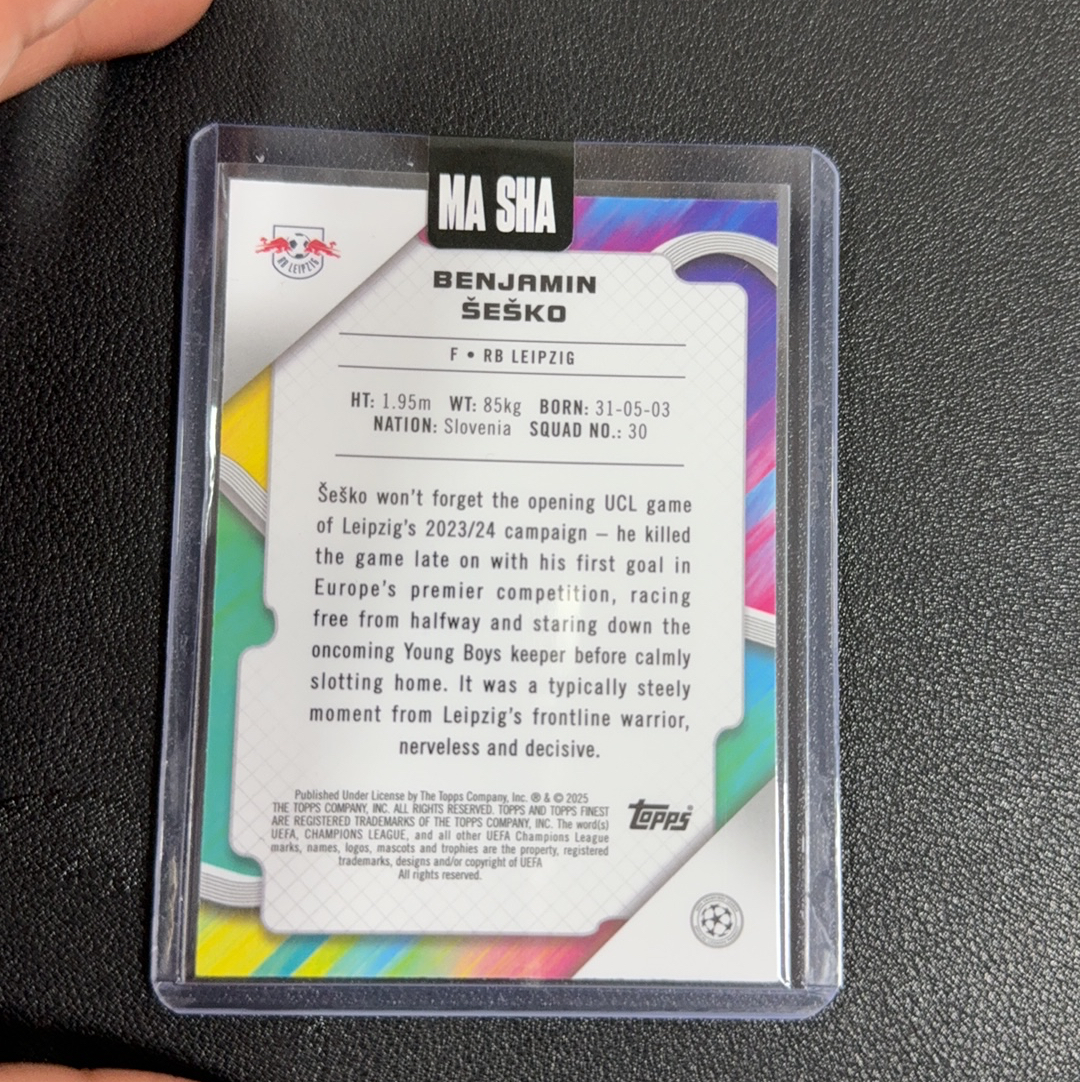 2025 Topps Finest Benjamin Šeško 限量104/275编 莱比锡红牛 本杰明 塞斯科 新拆盒子 拆盒及上膜上夹 肉眼未见明显瑕疵